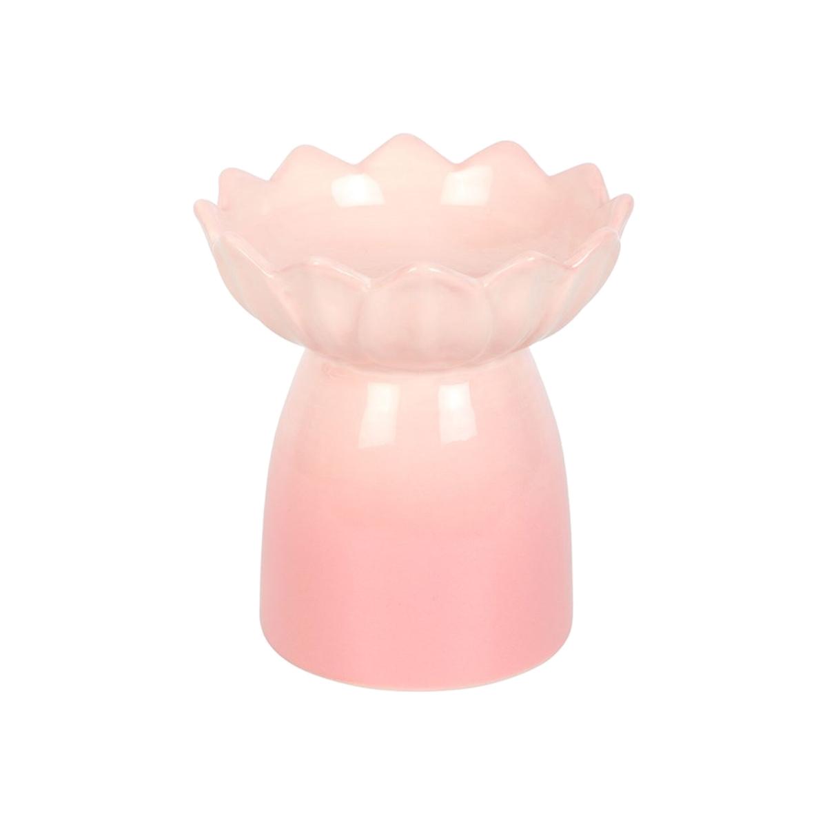 Bring a touch of nature's grace into the home with this pink water lily ceramic oil burner and wax warmer. The delicate design of this burner makes a beautiful addition to any room. Perfect for infusing your space with calming scents. Simply place a single standard tealight in the space at the back and add a few drops of diluted fragrance oil or wax melts into the bowl.