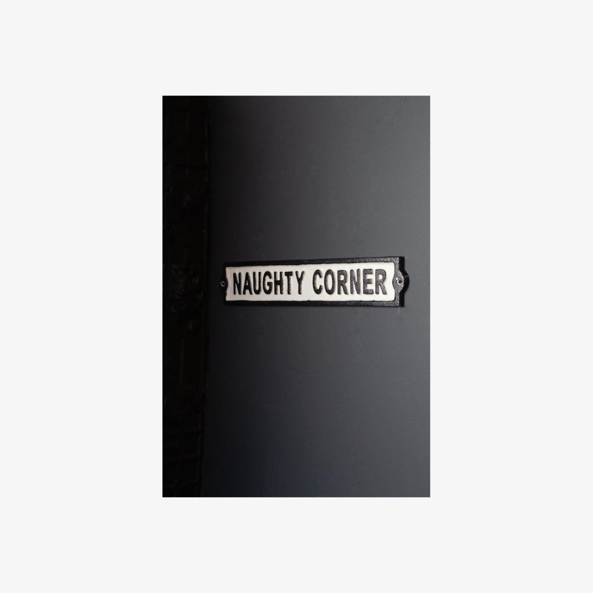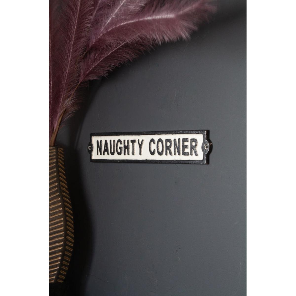 About The Naughty Corner Metal Sign A show stopping monochrome piece, the Naughty Corner Metal Sign will add a statement look and a fabulous phrase to any room in your home. This Vintage Metal Sign has a rustic finish with a retro vibe, injecting a mischievous yet effortlessly stylish feel amongst any interior, a must have accessory if you dare to be different with your delightful decor. Why We Think You’ll Love The Metal Wall Sign Creating a simply glamorous look in any corner of your home, this Retro Metal Sign looks like a classic antique with its dazzling distressed finish and bold black typeface. A quirky Metal Wall Hanging that will add a show stopping look to your existing style, this sign is a luxurious alternative to wall art, bringing a unique texture and a playful edge to any space. Where To Style The Black and White Sign This monochrome Wall Hanging Decor will bring an element of character and fun to your living area styled above a Rockett St George Drinks Trolley for the ultimate cocktail lounge look that will stand out from the rest. Alternatively hang this Black Metal Wall Art in your bedroom for a fearlessly bold style spot that encapsulates a charming and magnificent feel so wonderfully.