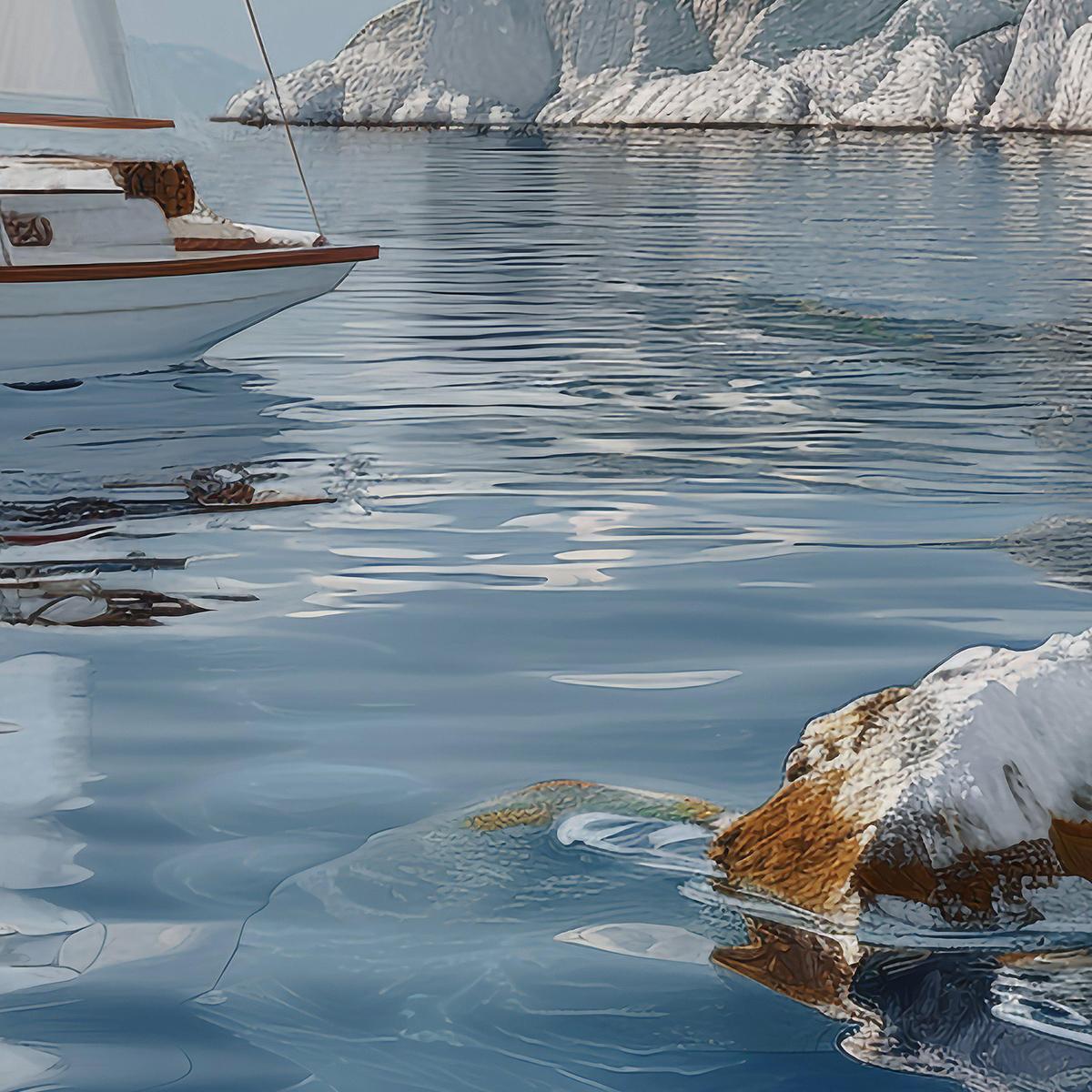 Escape to a peaceful summer retreat with the Nautical Escape Wall Art. Featuring a sailboat gently floating in a secluded rocky cove, this artwork evokes the warmth and tranquillity of a perfect summers day.