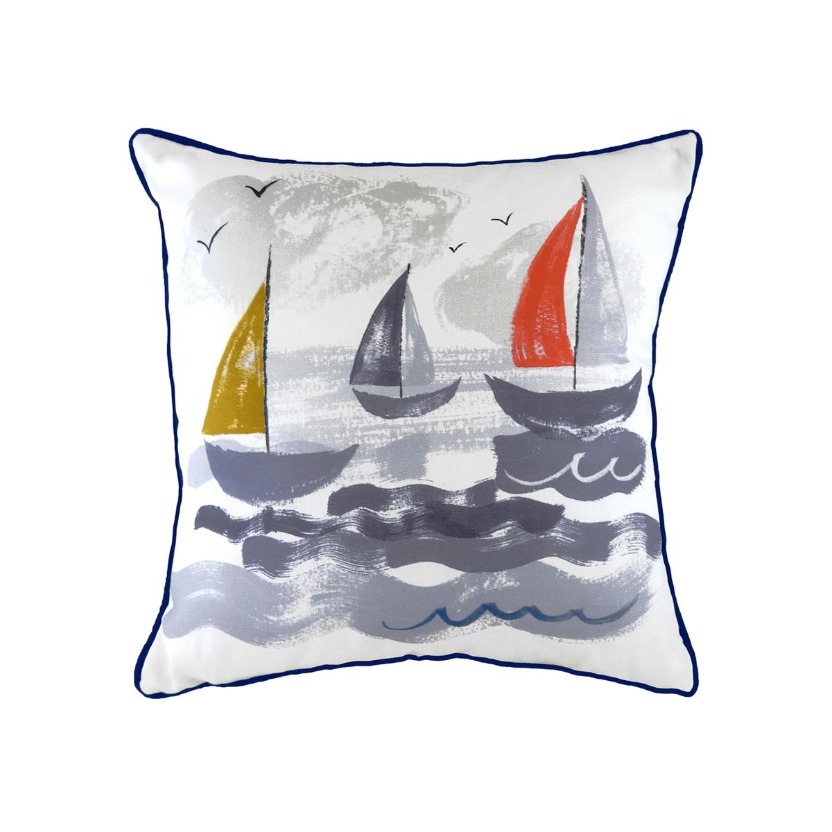 Nautical Sailboats Cushion 43 x 43cm - Navy / Feather