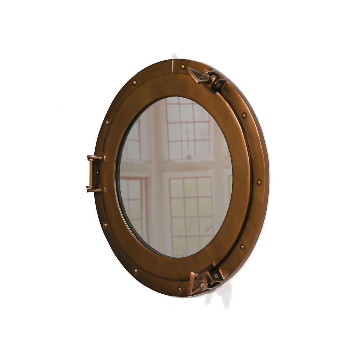 Add a maritime touch to your home with this Large Brass Antiqued Ships Nautical Port Hole Accent Mirror. Crafted with a brass finish aluminium frame and its distinctive detailing, this mirror is sure to make a statement in a bathroom or any room.