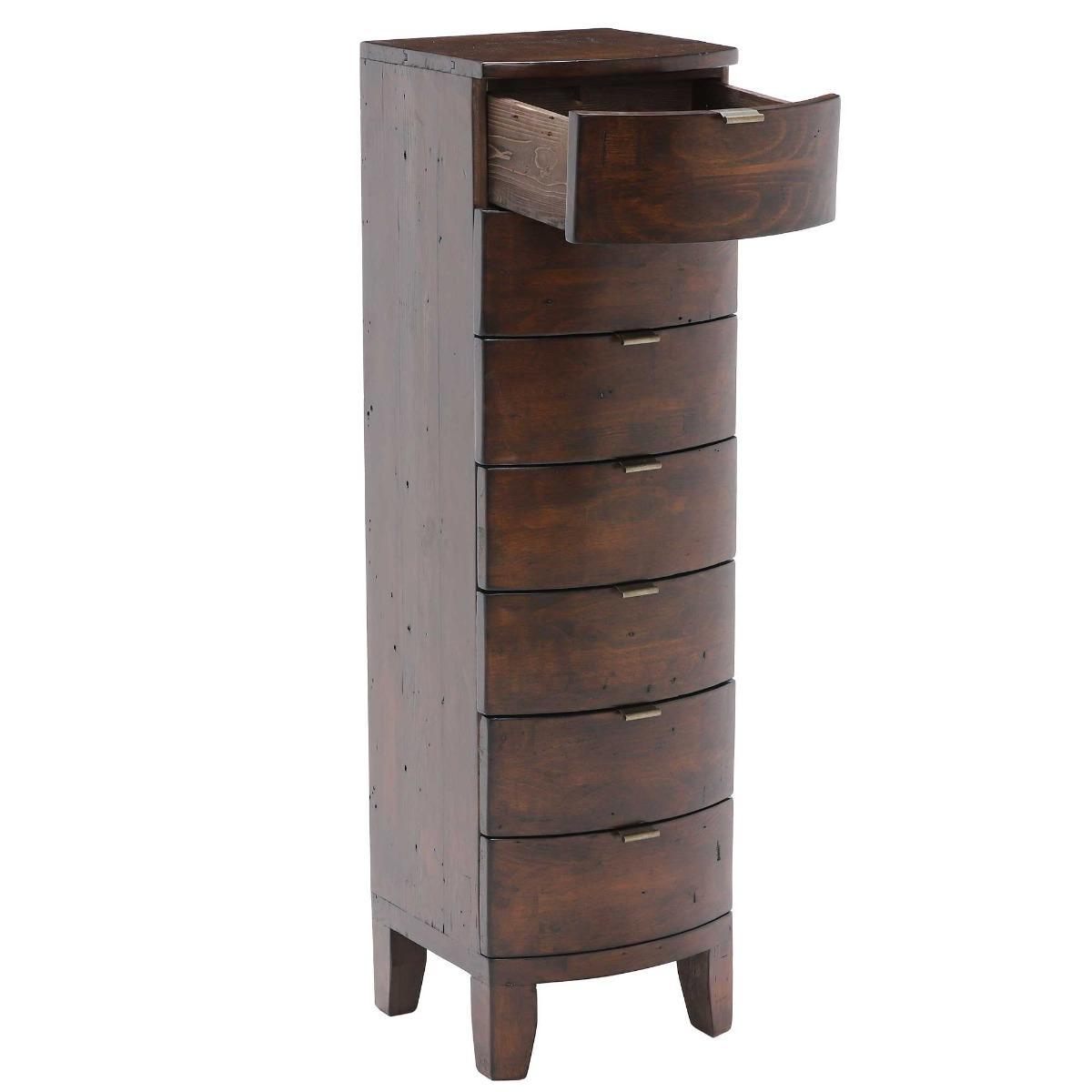 Design. Bring timeless beauty into your bedroom with the Navajos range. The Navajos 7 Drawer Tallboy offers an abundance of storage and style, with seven drawers and an elegantly curved front. A warm chestnut finish and chunky legs give it a rustic charm. The Navajos Tallboy is crafted from ethically sourced reclaimed and recycled wood, making each piece unique.