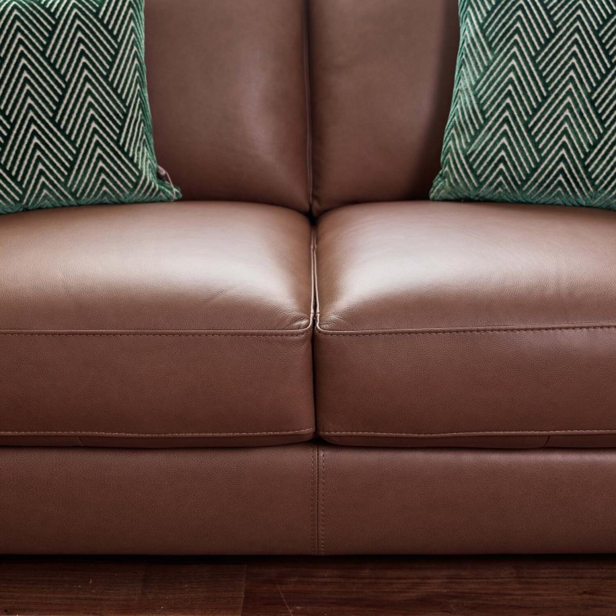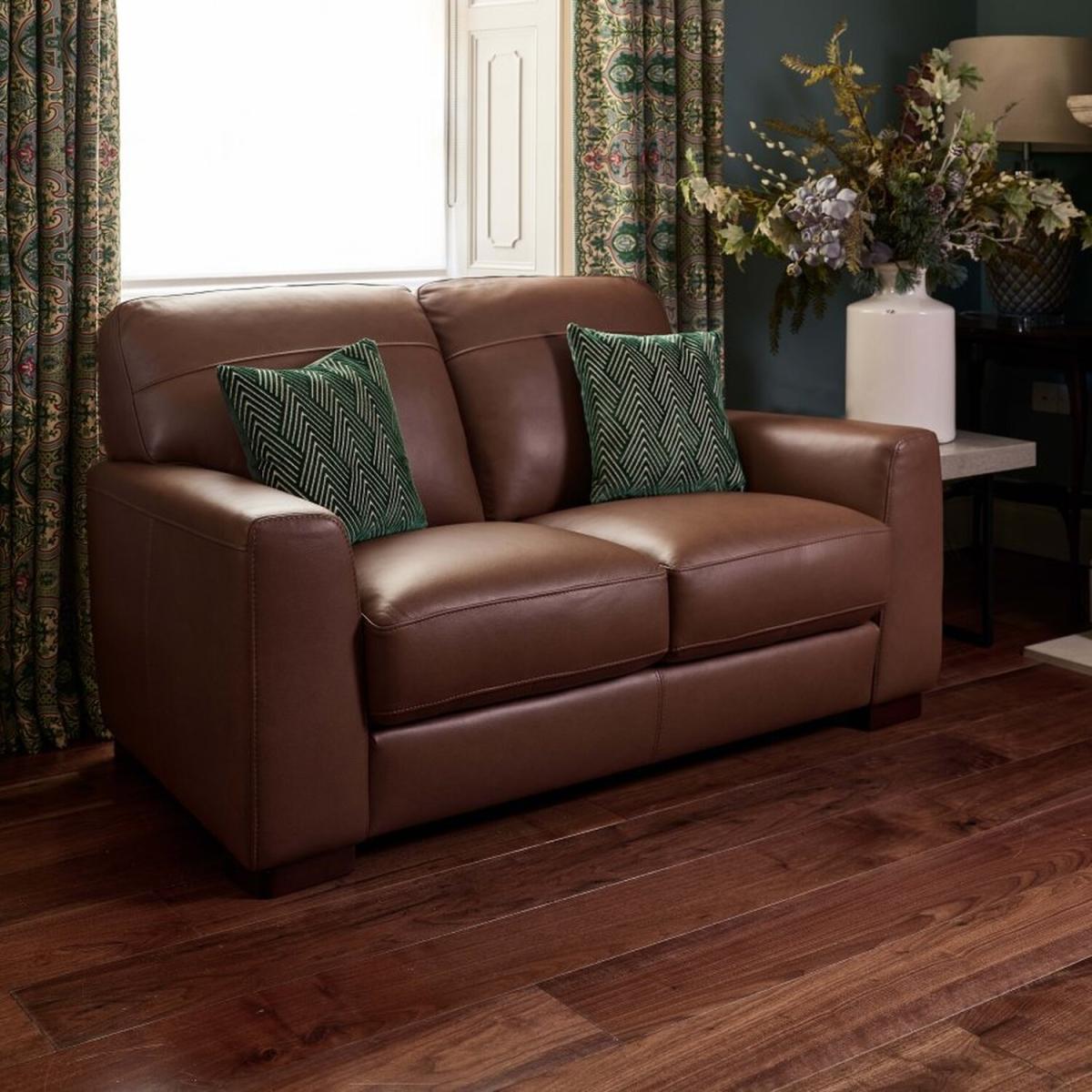The Navarra 2 seater sofa is a stylish and supremley comfortable sofa which is masterfully upholstered in genuine tan leather. The 2 seater sofa is constructed from solid wood and high quality ply and features seats sprung with elastic webbing and a no-sag sping to ensure longevity and shape. The whole sofa is supported by low profile solid wood feet.