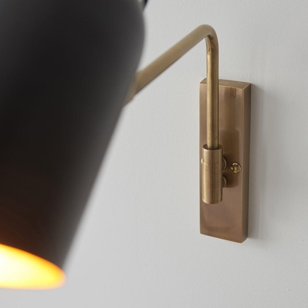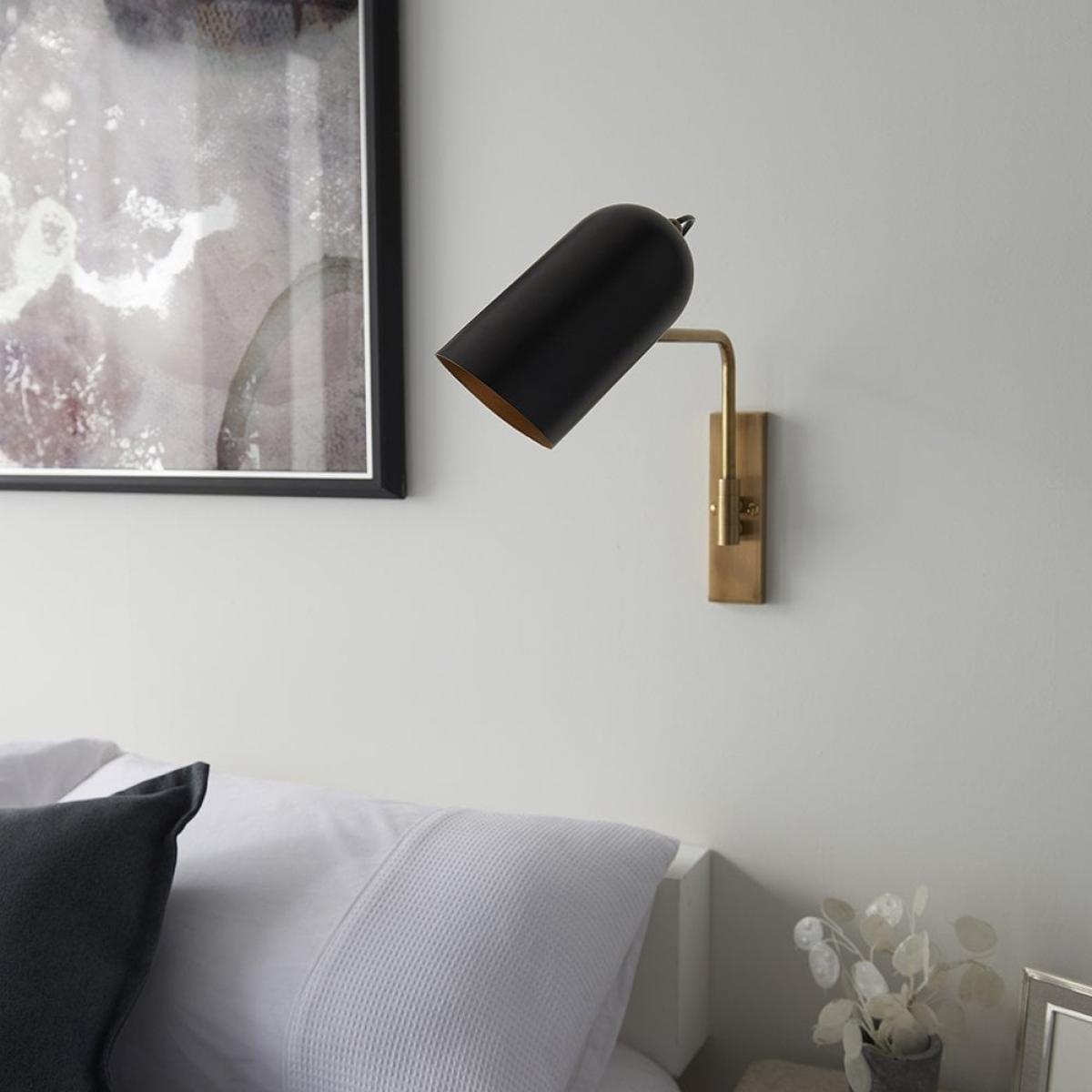 I love this wall light because of its sleek, contemporary silhouette paired with vintage brass accents, making it a versatile piece for many interiors. Its black shade offers a modern touch, while the brass arm adds warmth and a hint of luxury. It's particularly effective in modern or industrial-style spaces, but can also work well in eclectic or vintage schemes. Practical styling tips include positioning it beside a bed or reading nook to create focused task lighting, or using as a statement piece in hallways and living areas. Keep the surrounding decor minimal to let its clean lines shine, and consider pairing with other brass or black fixtures to keep the aesthetic cohesive.