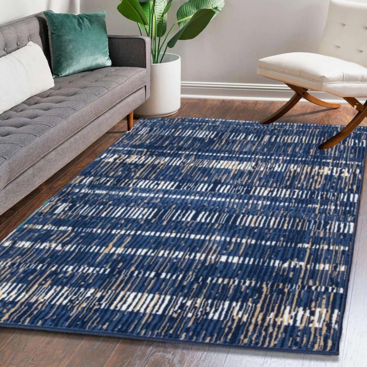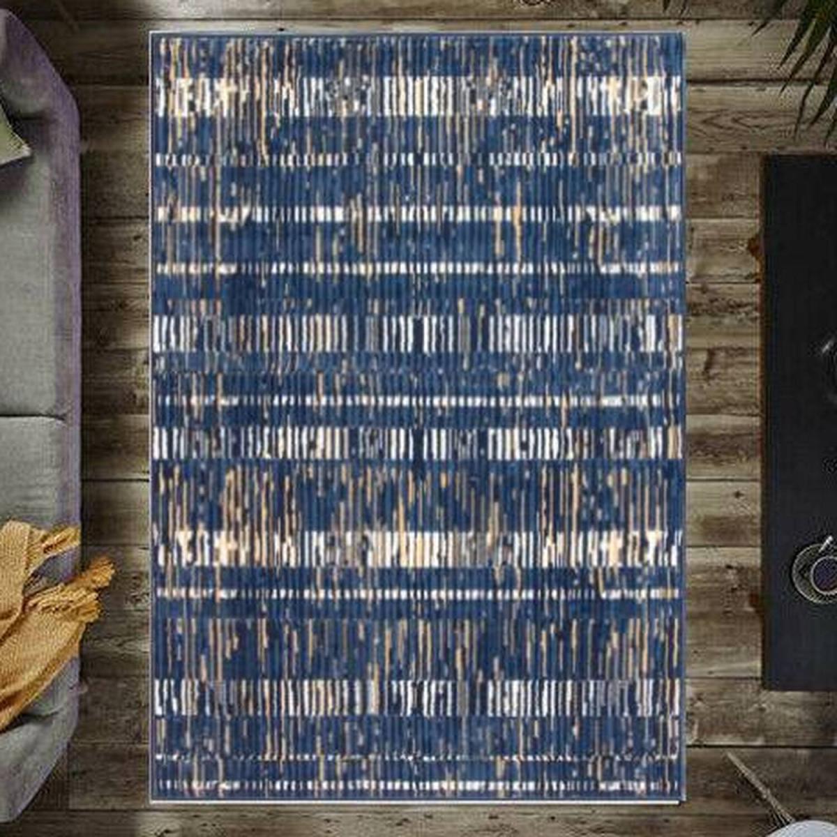 Navy and Ochre Scandi Area Rug - Blue / 230cm