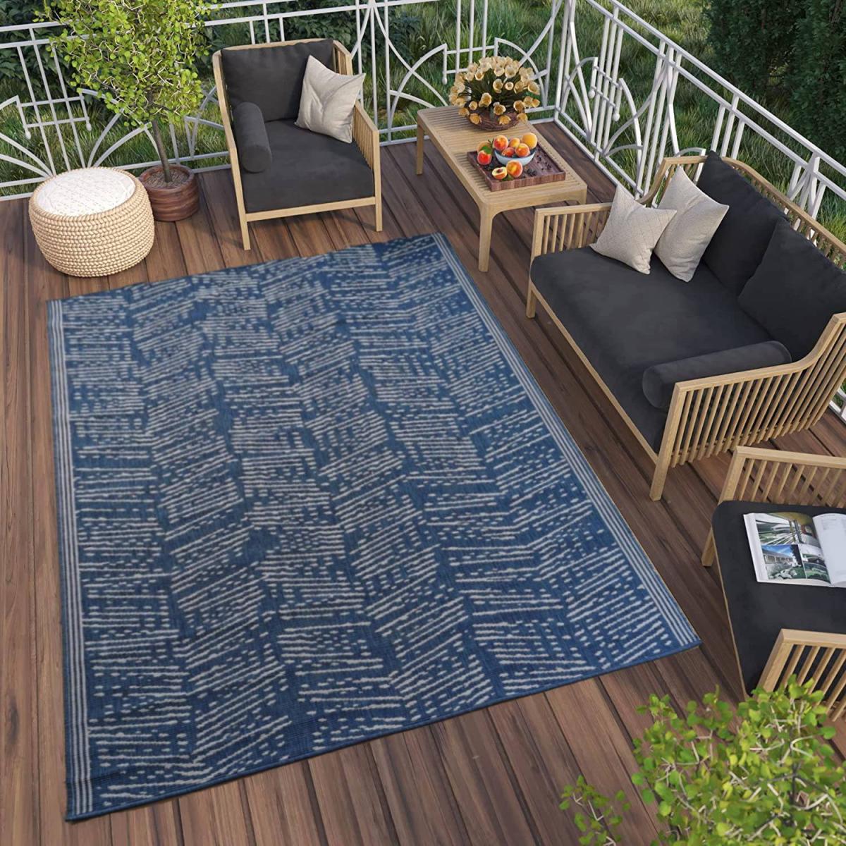 Navy and White Herringbone Indoor and Outdoor Rug - BW - Navy