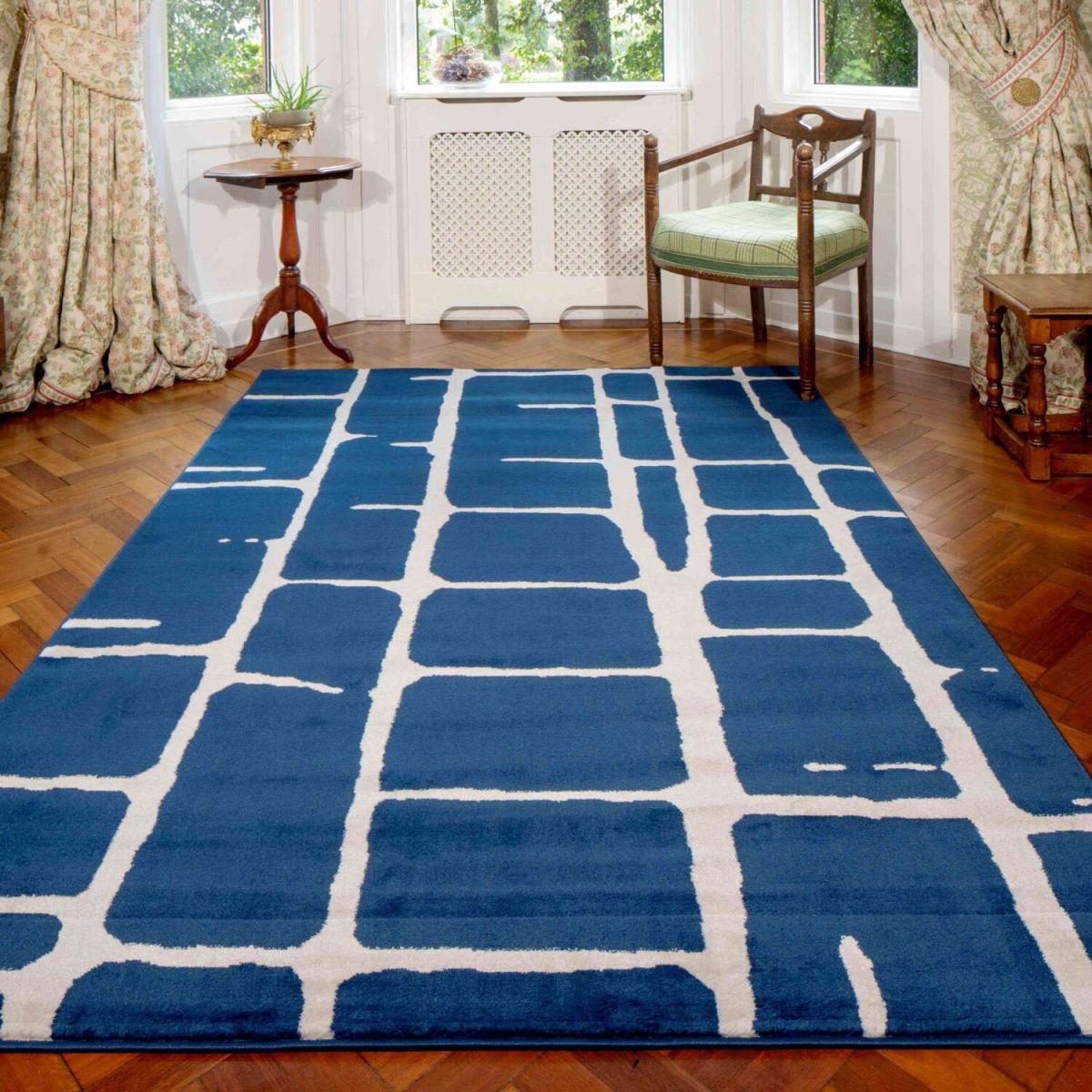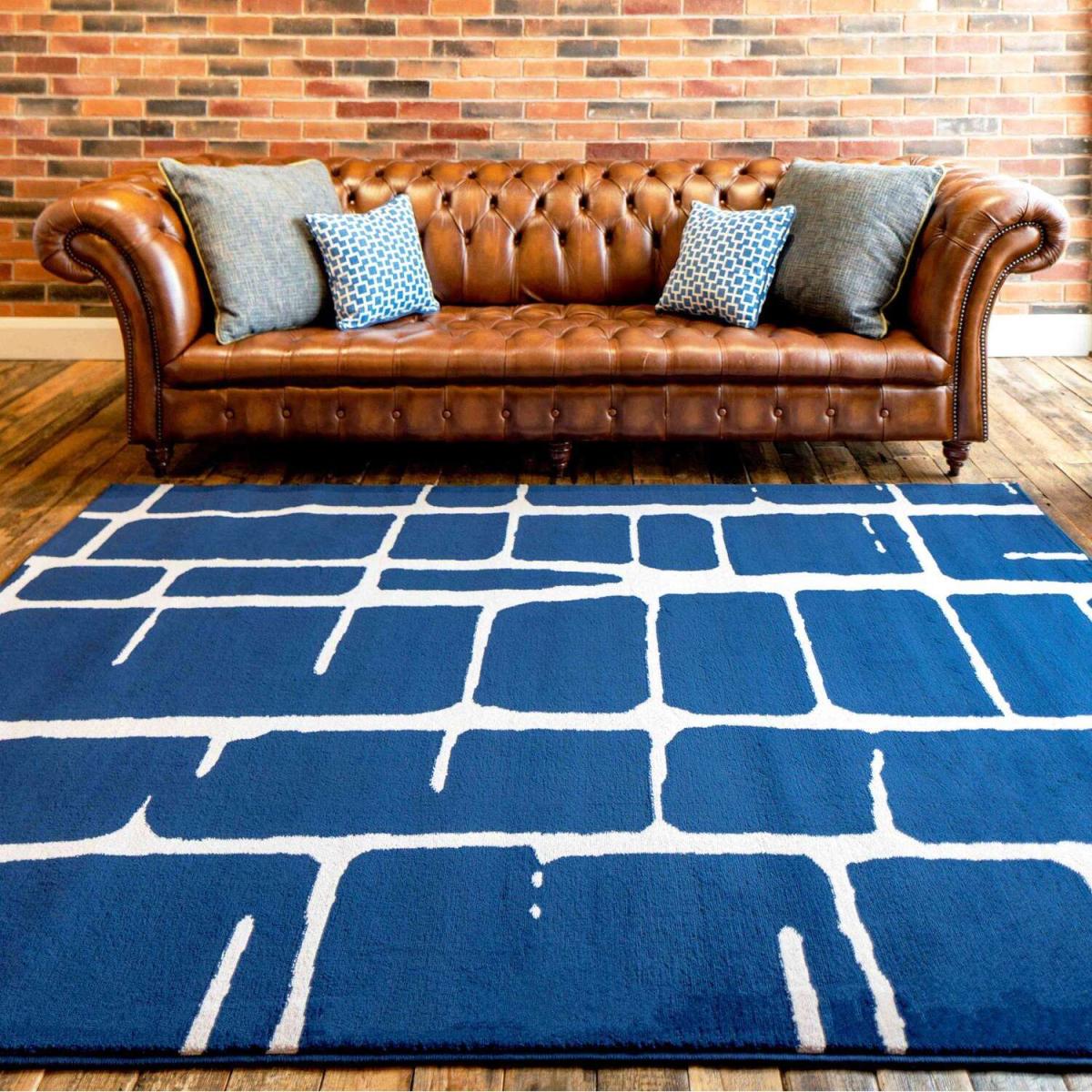 Navy Blue and Ivory Fractured Design Living Room Rug - Dallas - Blue