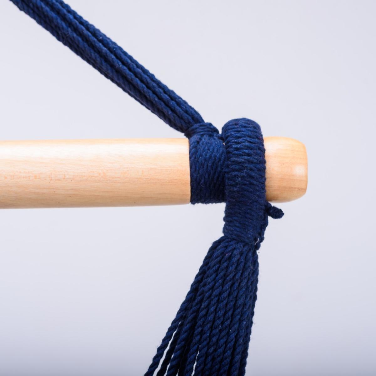 Handwoven by artisans in Nicaragua. Designed for your ultimate comfort and ready to be hanged indoor in your cozy nook or outdoor on your deck, porch or a tree. A simple invitation to enjoy the moment. Color:Navy Blue. Weight capacity: 280 lbs, Fits 1 person. Handwoven of natural cotton that is soft and resistant. Spreader bar made from renewable wood; natural wood color may vary. Every component used in our swings is friendly to the environment. Does not include Hanging Hardware, Straps or Stand.