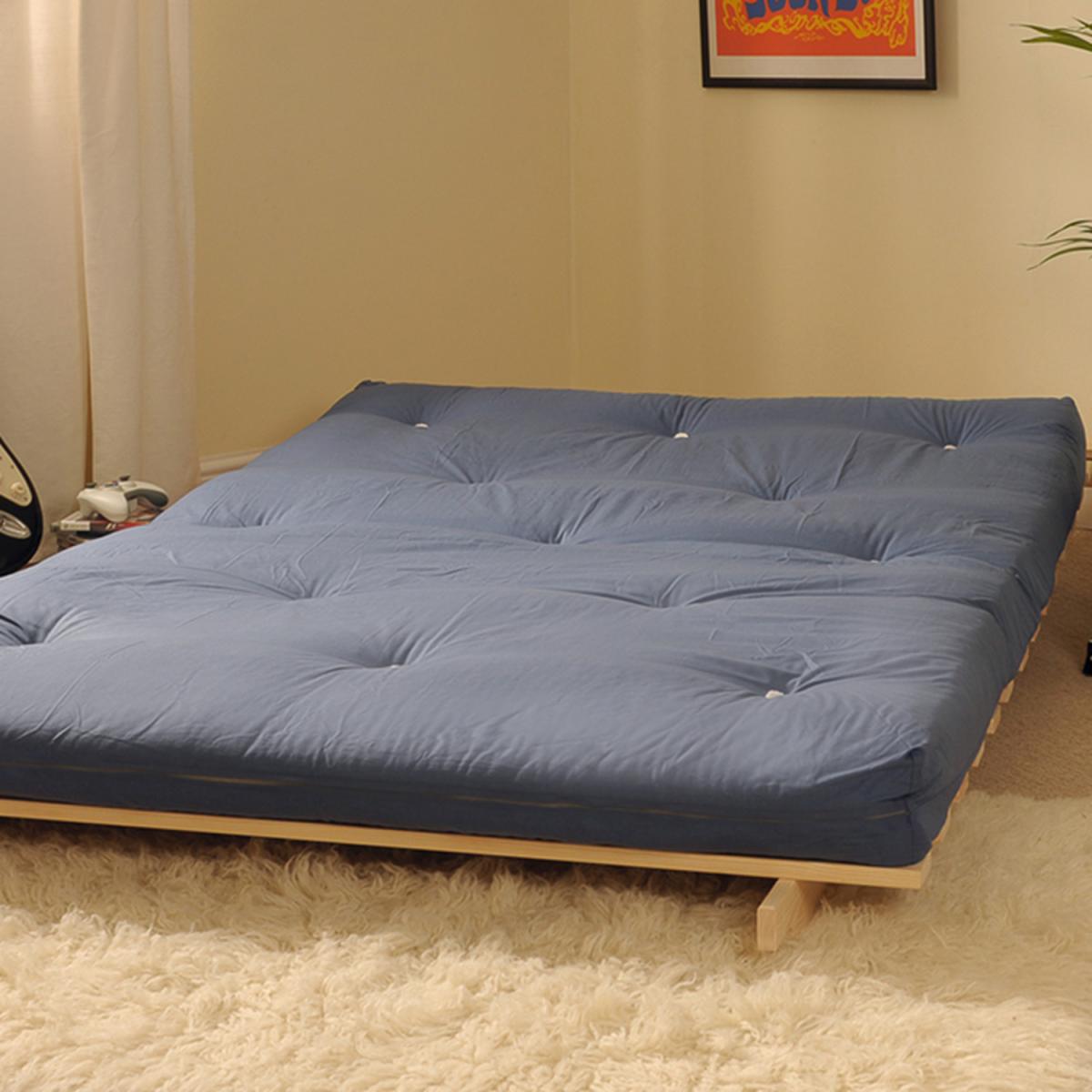 This great value, easy to use futon is a great addition to any room. A comfortable, compact solution for that unexpected guest. The base is a solid, wooden pine frame. It is sturdy, practical and can be painted easily, to match any room. The luxury mattress is made from a thick quality woven filling with a non-removable, 100% cotton drill cover. With luxury daisy tufts. In seconds the futon goes from a comfortable 2 seater sofa to a 4ft Small Double bed, and vice versa. This futon is ideal for any occasion, use a practical sofa or a comfy bed.