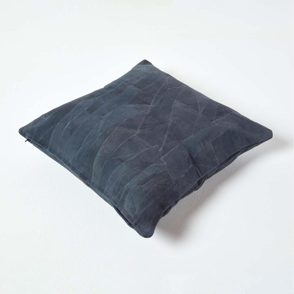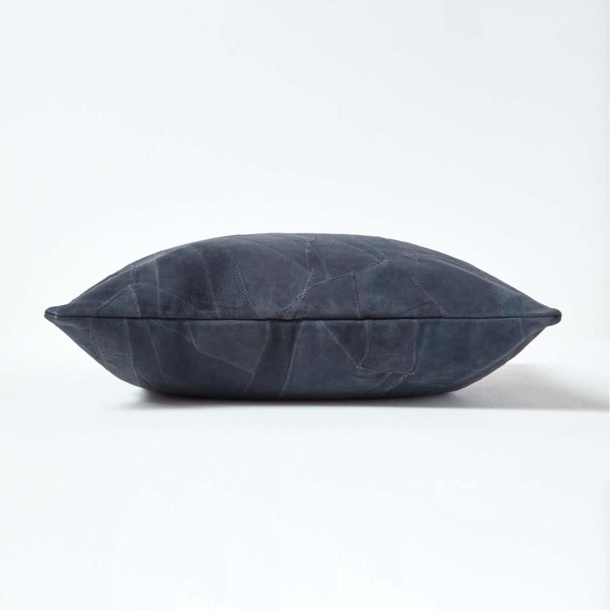 Handcrafted suede leather cushion cover from Homescapes to add design and texture to your home interiors. This cushion cover will easily complement any interior style. A natural fabric, suede feels soft and gentle to the touch, and the cover has been created out of recycled offcuts to reduce waste. This means that each cover is unique, as different off cuts are stitched together to create a patchwork style pattern. Mix and match with other colours from Homescapes suede and leather range such as cream and grey for a contemporary look that will never go out of style. The cover has a zip closure to make filling quick and easy and it has a cotton lining to protect the suede. Comes with a Homescapes feather cushion pad.