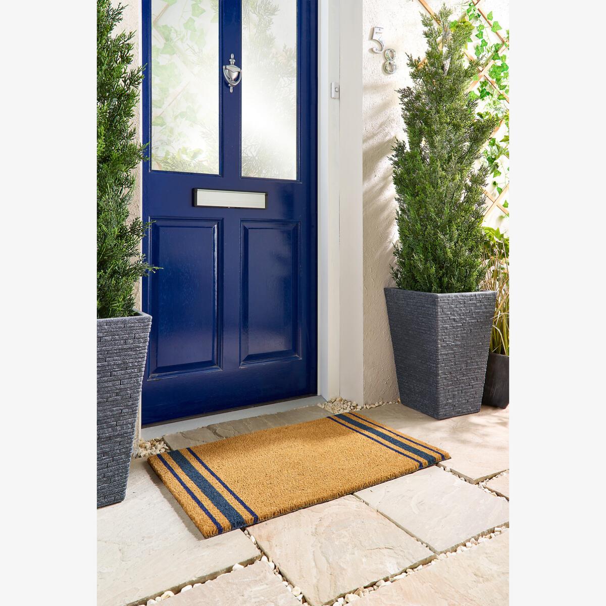 Expertly crafted from natural materials, My Coir Door Mat is the perfect welcome to any doorway. The hard-wearing natural coconut husk fibres remove dirt, dust and mud at the door, while looking great and being an eco-friendly choice. This gorgeous Navy Border design is classic and timeless, creating a stylish and warm welcome at your door. (All Coir Mats are made from Natural Coconut fibres and may shed. During this time, brush and shake the product to bring it back to life. If you are using this product outside in direct rainfall, we recommend you leave your mat in a sheltered area)• Hard wearing.• Made with 100% coconut fibres.• Rot and moth proof.• Eco-friendly Latex backing – non-slip and hard wearing.• Durable inside and outside. Sizes Available: 45x75cm. Composition: Face: Tufted 100% natural coconut husk fibres, Backing: Eco-friendly Latex This product will be dispatched by one of our trusted suppliers. You’ll be contacted by their selected courier about your delivery. PHOEN01