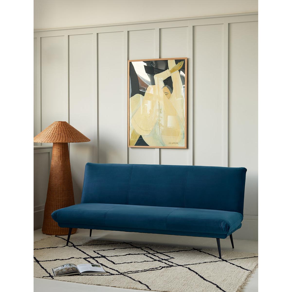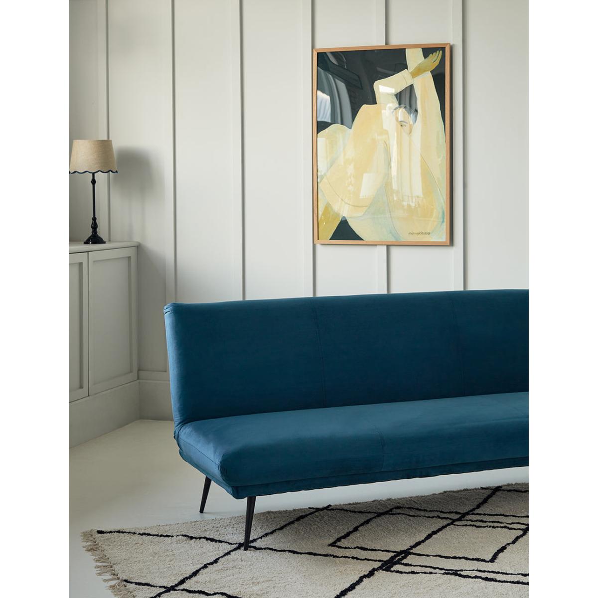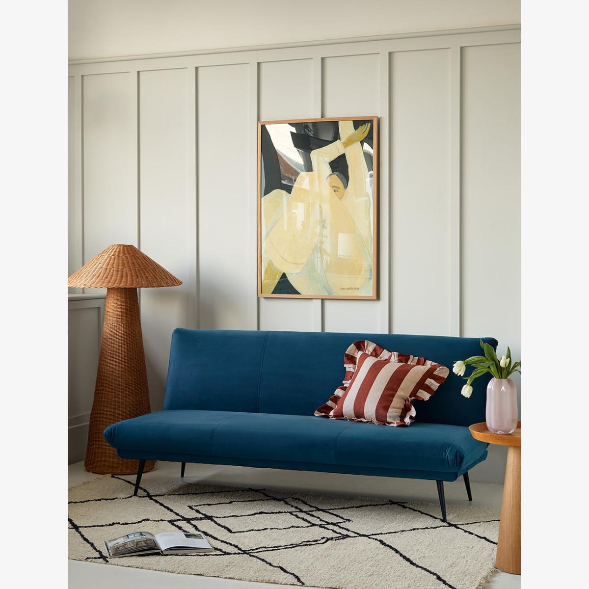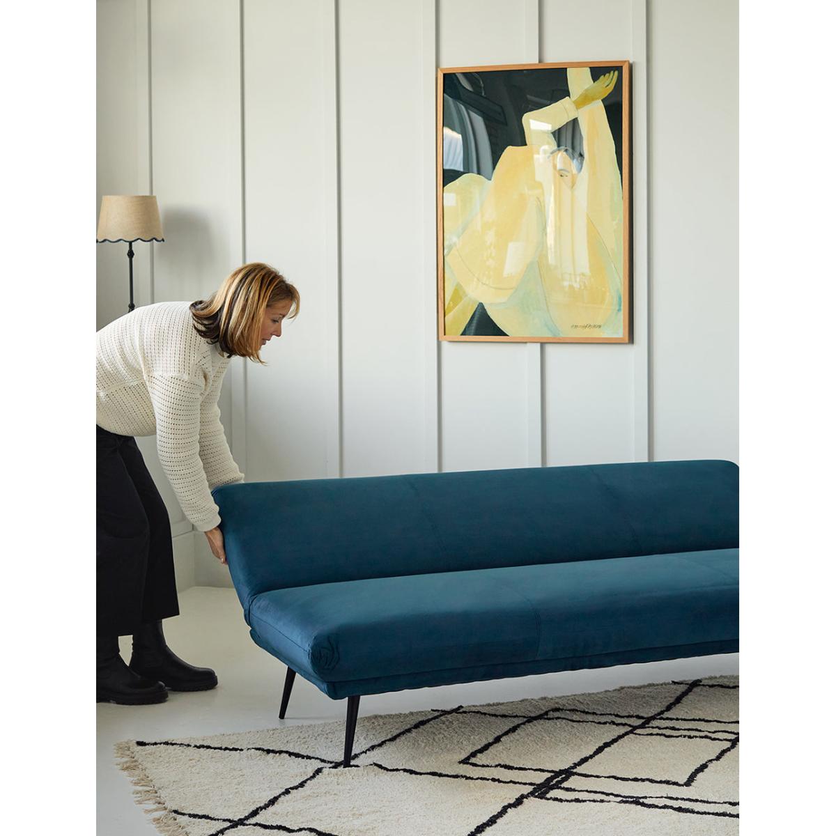 Give your guests a comfortable place to stay without compromising space and style with the Blue Velvet Sofa Bed.