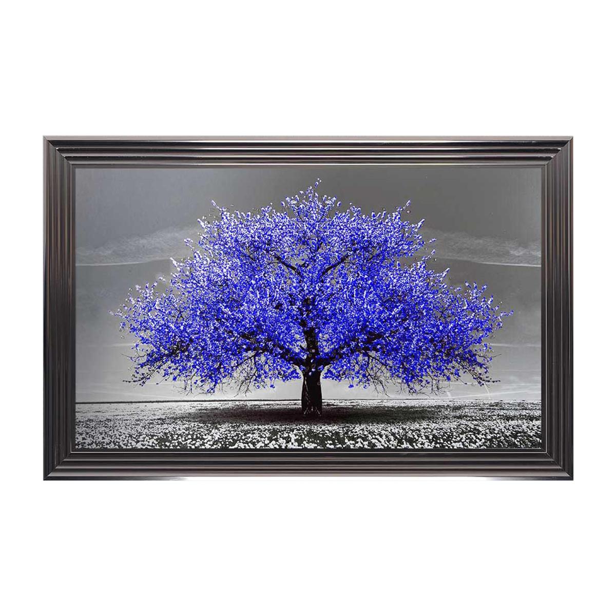 With its vibrant blue cherry tree blossom and monochromatic background, this framed art is captivating. As it’s hand-embellished with liquid acrylic highlighting, each piece is unique. Why you'll love it. This beautiful hand-painted piece of framed wall art is a one-of-a kind. Contemporary depiction of a cherry tree in full bloom. Vibrant navy blue blossom pops against a monochromatic background. Cherry blossom is embellished with hand-applied liquid art. Stunning three-dimensional effect. Presented in a high-quality metallic frame. Made in the UK. This piece of framed wall art is part of the Furniture Village home accessories collection. What you need to know. Framed art can be weighty. Please ensure that your wall can support it. Dimensions. Height: 74 cm (30 in). Width: 114 cm (45 in).