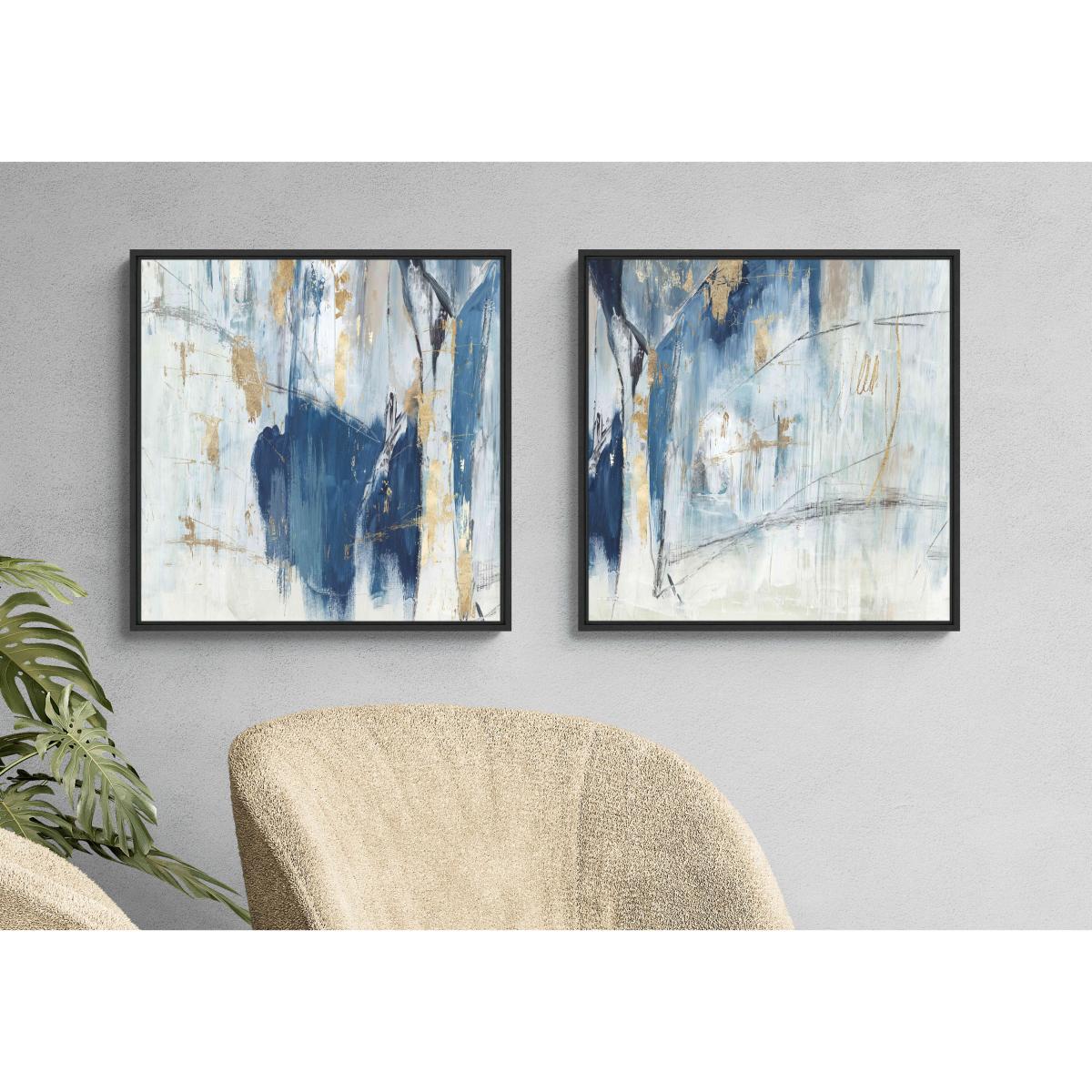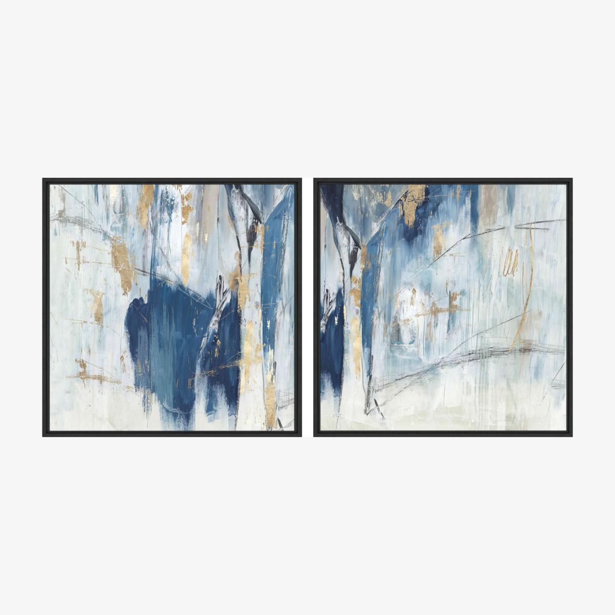 Elevate your interior with this stunning set of two framed canvas artworks. Its vibrant, abstract designs are the perfect choice for the modern home. Why you'll love it Beautiful abstract wall art for the contemporary home. Decorated with metallic gold leaf. Digital giclée print with vibrant colours. Displayed in modern black frames. Made in the UK. What you need to know Canvas floating in MDF frames. Metal hanging fitting with a nylon cord. Dimensions Height: 64cm (26 in). Width: 64 cm (26 in). Depth: 3 cm (2 in).