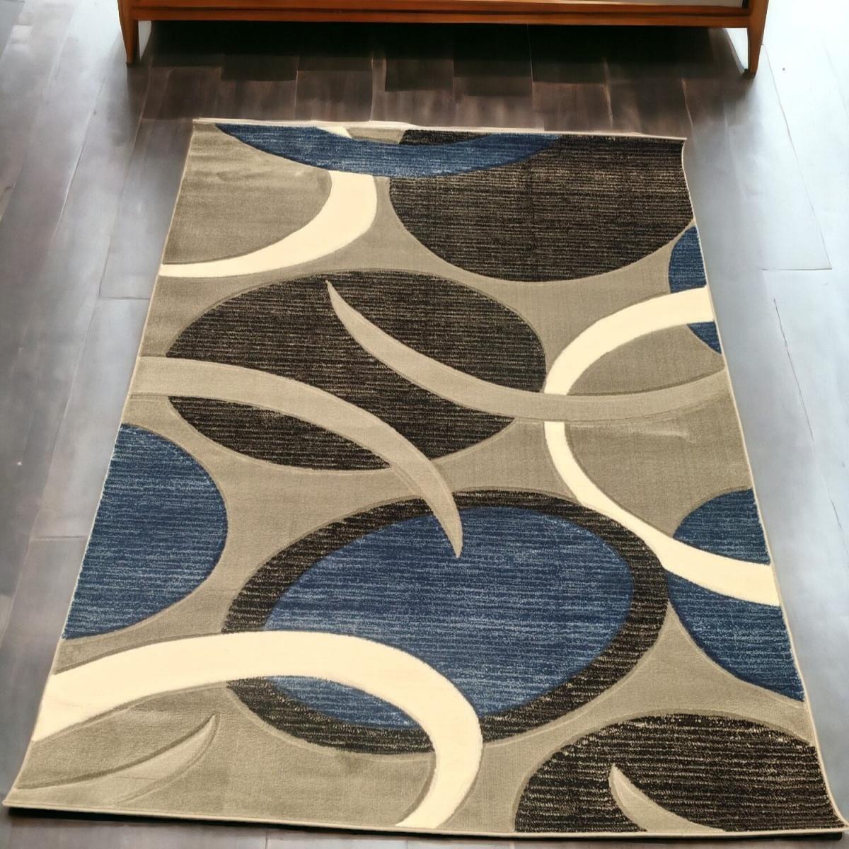 Navy Grey Contemporary Circles Carved Living Room Rug - Blue / 120cm