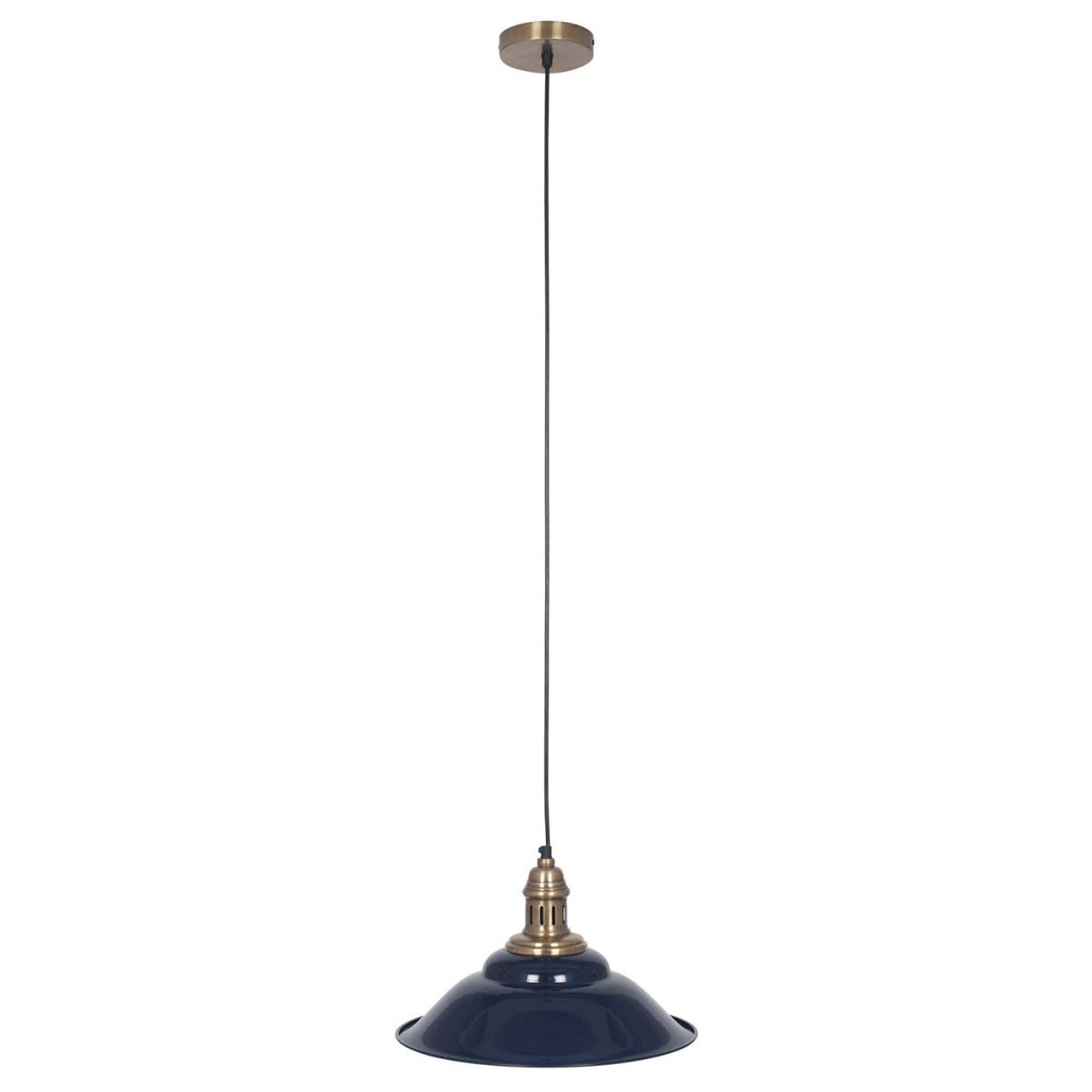 I love this navy metal pendant for its industrial yet versatile look, making it a great addition to both contemporary and vintage-inspired interiors. It works particularly well in kitchens, dining areas, or even a home office where you want a functional statement piece. To get the most out of it, consider grouping a few over a long dining table for a cohesive look, or use it alone as a focal point in a minimal space. Pairing it with natural materials like wood or matte finishes can enhance its classic vibe, while keeping the ceiling and surrounding decor simple ensures the pendant remains the star of the show.