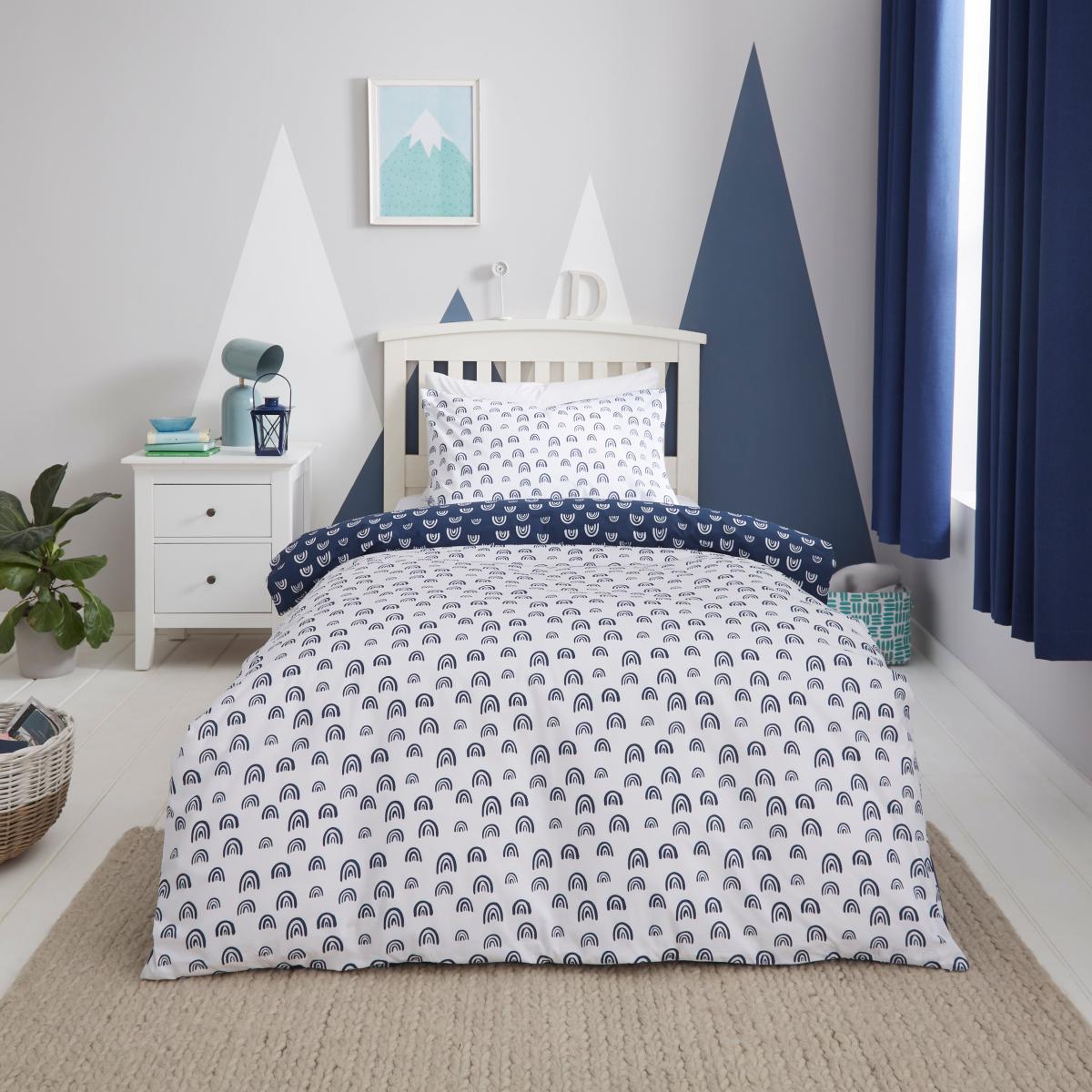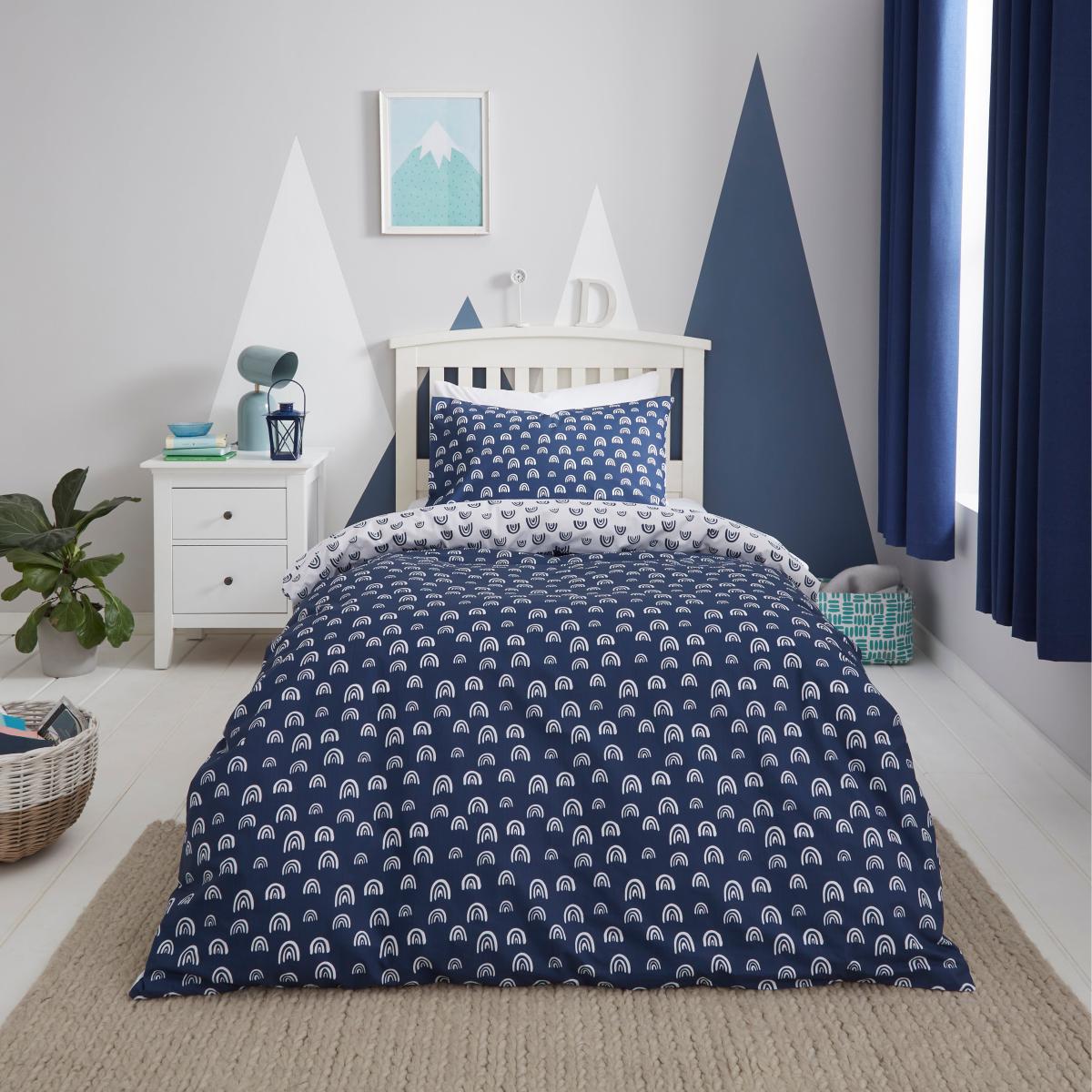 I really like this navy rainbow bedding for its playful yet versatile design, making it ideal for a child’s room that benefits from a calm, colour-inspired theme. The navy base with subtle rainbow patterns adds a touch of fun without overwhelming the space, making it suitable for both boys' and girls' bedrooms. In terms of styling, pair it with crisp white or light-grey walls and simple furniture for a fresh look, or add colourful cushions and accessories in similar tones for a personalised touch. It's practical too-easy to coordinate with various colour schemes and perfect for creating a cosy, inviting space that can grow with your child.