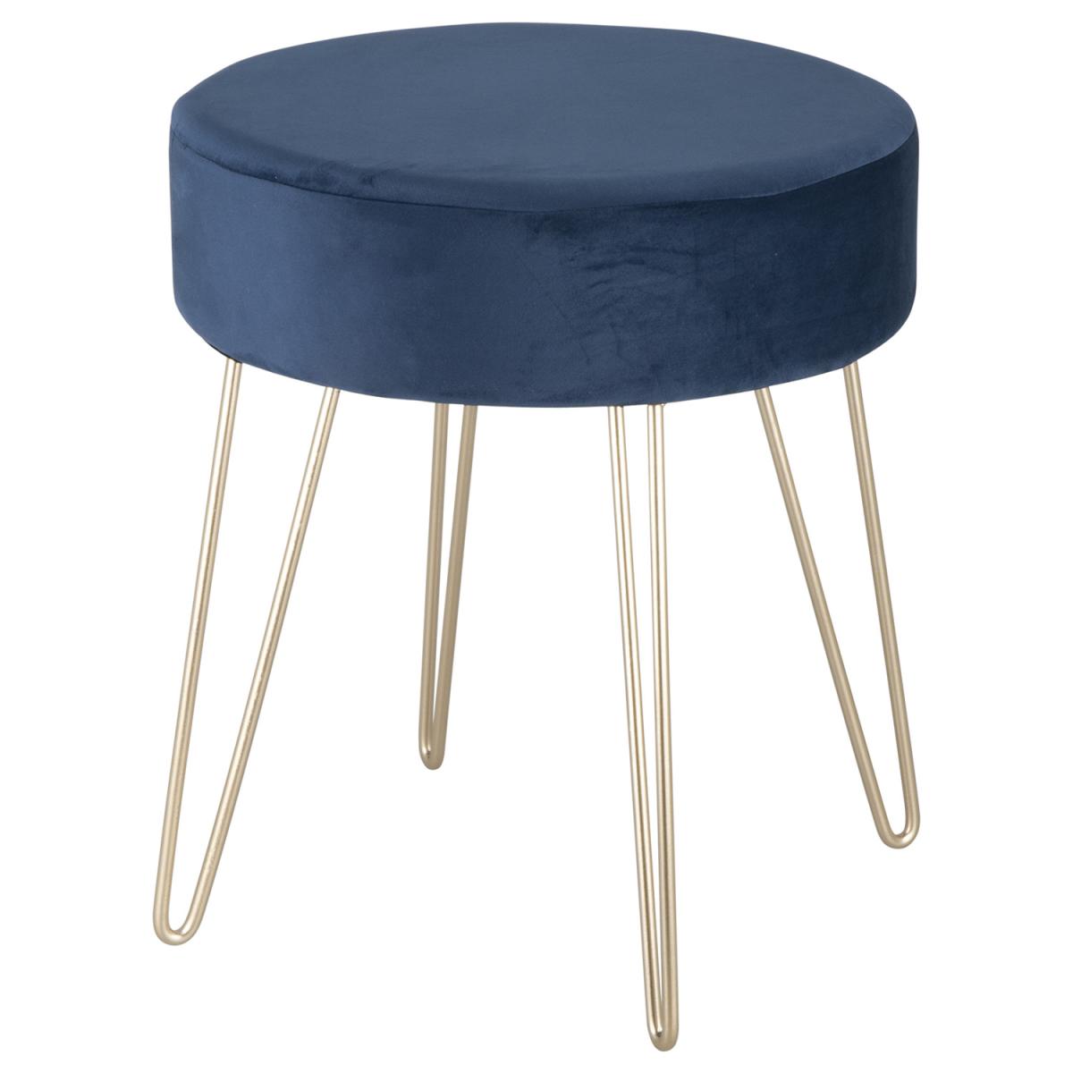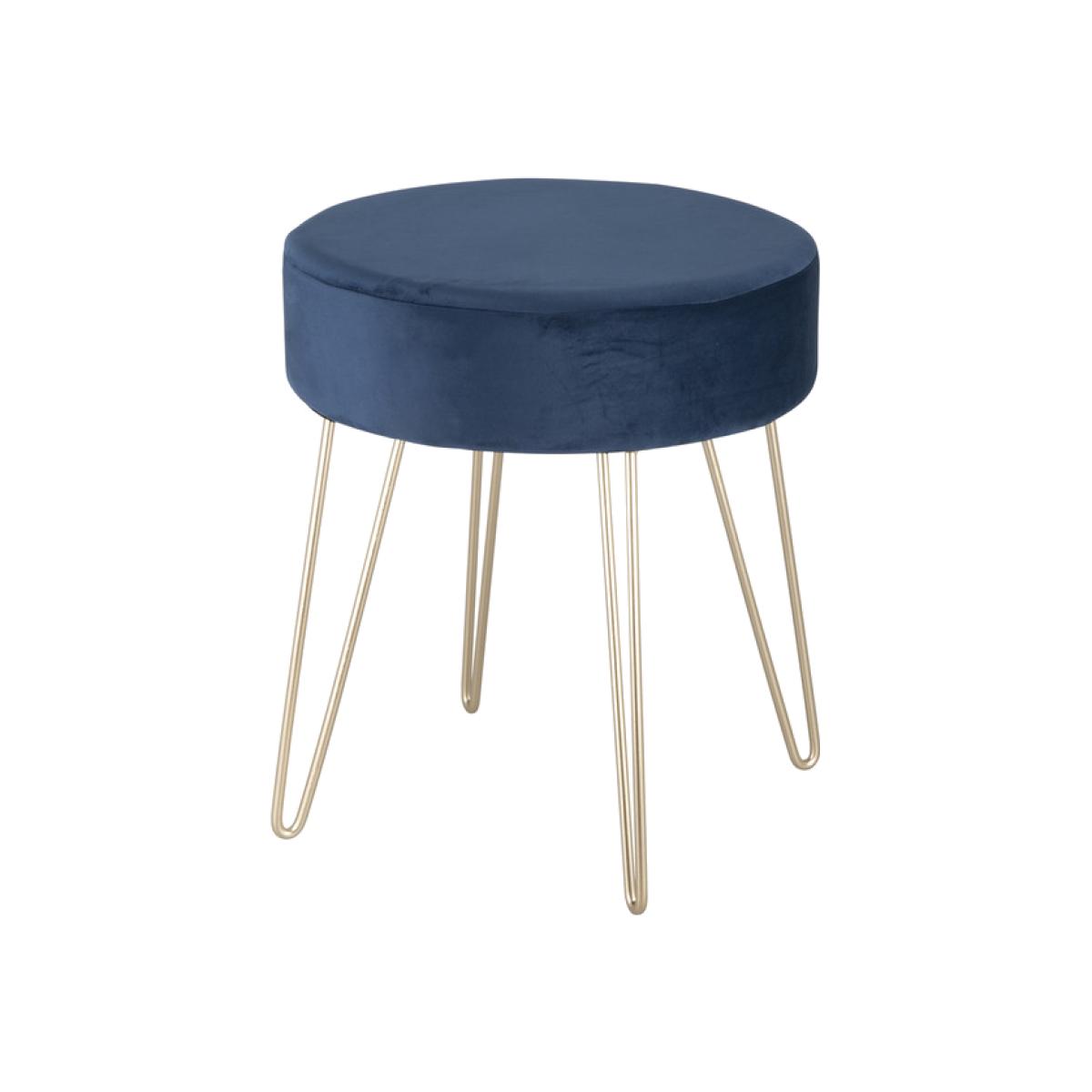This Navy Stool with Metal Legs is a versatile and decorative home accessory, featuring a velvet fabric colour in a deep shade of blue and accenting golden metal pin legs. A chic and functional touch for the corner of your room, this small stool is ideal for resting magazines or remotes on to showcase your lush sense of style.