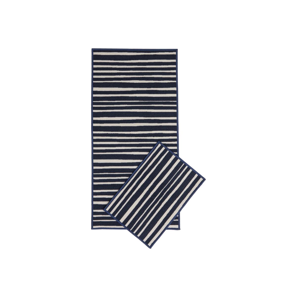 Navy Stripe Washable Runner & Doormat Set Navy Blue/White