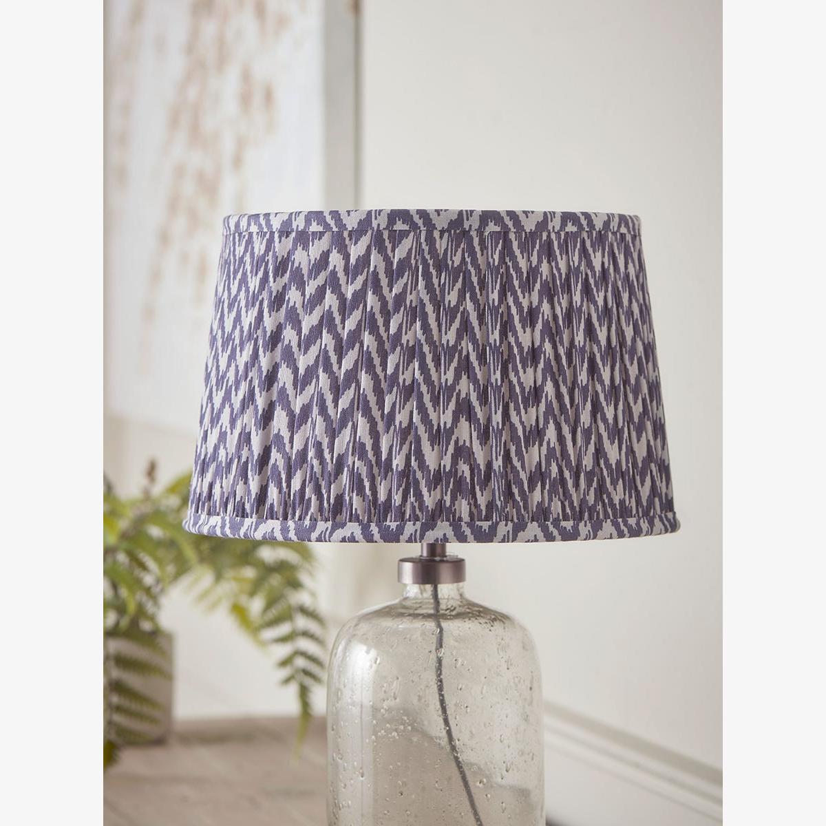 Available in two sizes, this lampshade has a striking blue and white ikat style chevron pattern in blue and white formed into crisp pleats to create a luxurious shade which will bring a fresh look to any of our lamp bases. The shade tapers gently to a wider bottom edge and is the perfect way to give any room a simple but effective refresh. Discover how to create the perfect lighting scheme for your home using our Lighting Buying Guide.