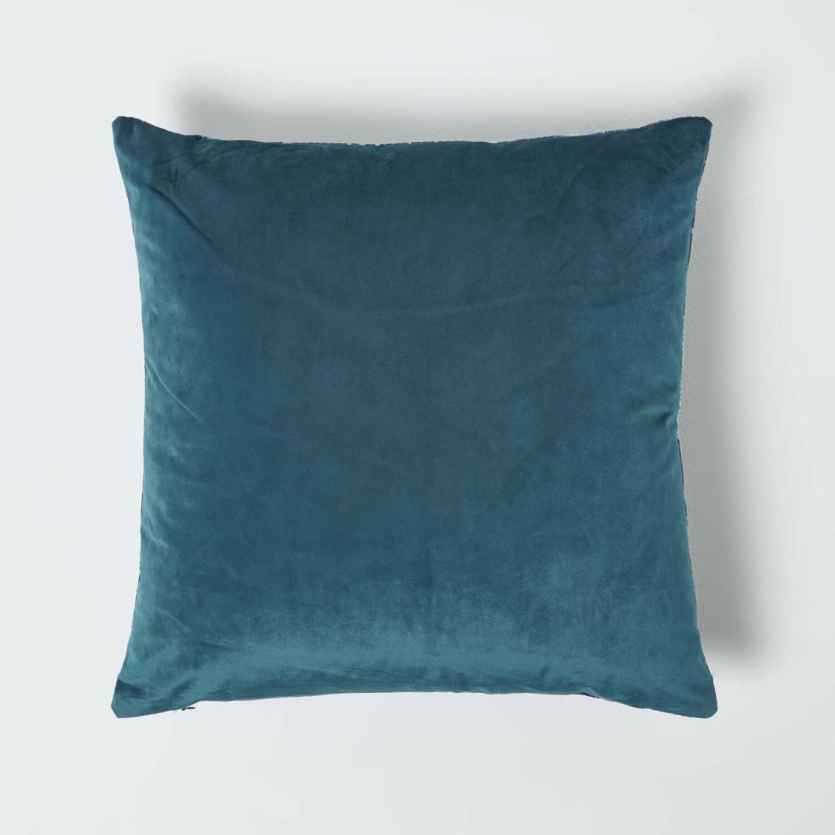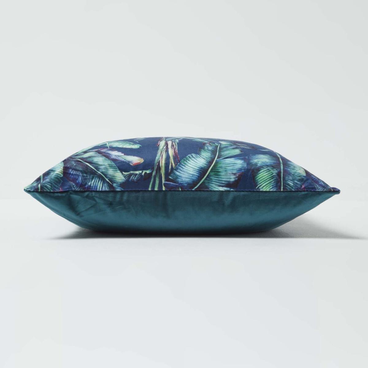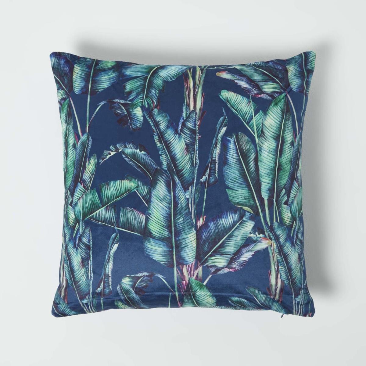 On-trend velvet cushion with a reversible design. Plain on one side, with a banana leaf velvet print on the other, this velvet cushion is ideal for adding a burst of colour to your living room or bedroom. This contemporary-style cushion cover is woven from super soft velvet and features a plain reverse, making it easy to style. Complete with a generous microfibre filling, this cushion is perfect for layering up on your sofa and bed, or use alone on an armchair for added comfort. Each cushion measures 46 x 46cm, cool wash at 30 degrees only.