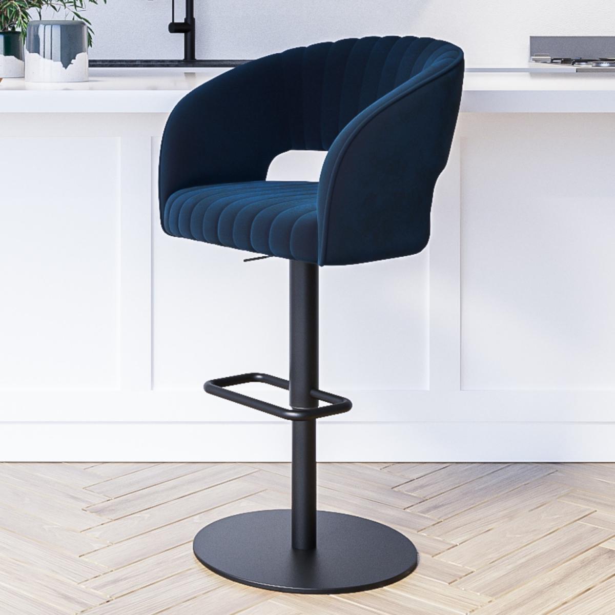Navy Velvet Adjustable Bar Stool with Back - Runa