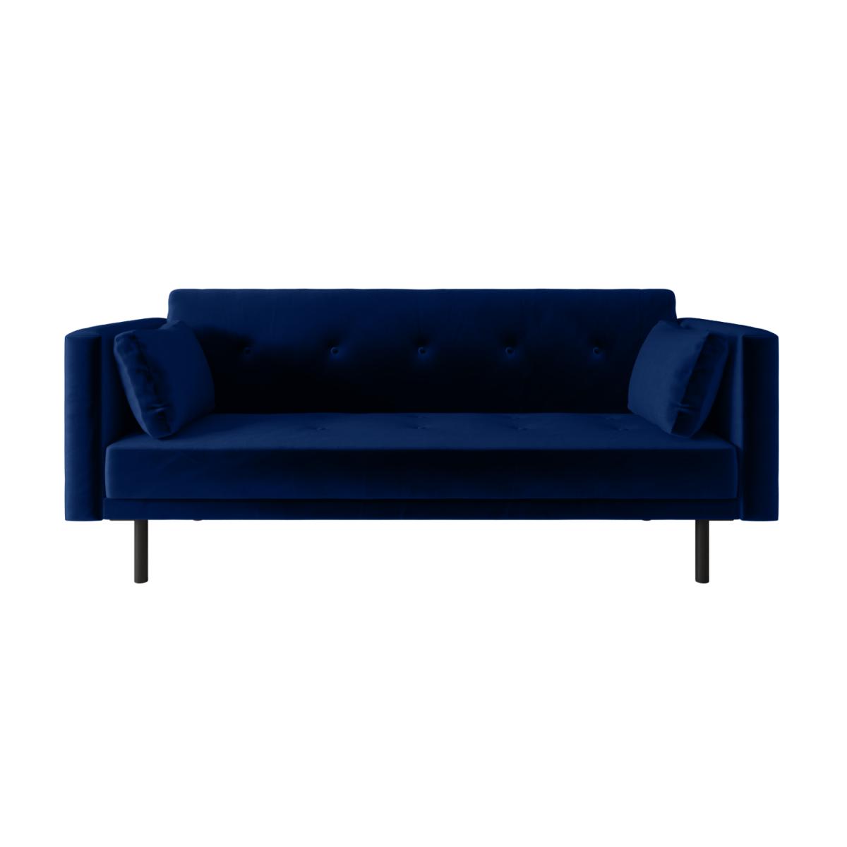 This click-clack sofa bed is perfect for those last-minute guests. It is beautifully upholstered in a soft touch navy velvet, it's guaranteed to make an impact, and it'll easily coordinate with other furnishings and décor. The dark metal legs add a final finishing touch. This sofa can seat up to 3 people and it also turns into a bed, the Rory is practical and convenient. Also, the 2 scatter cushions are included providing extra comfort.