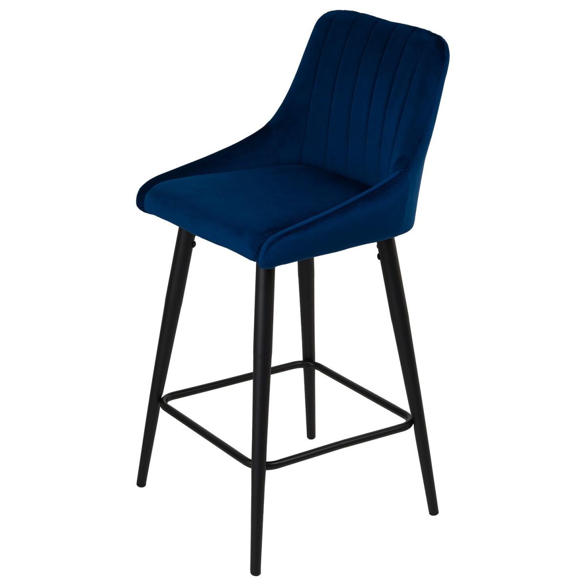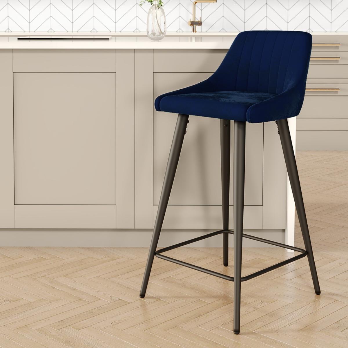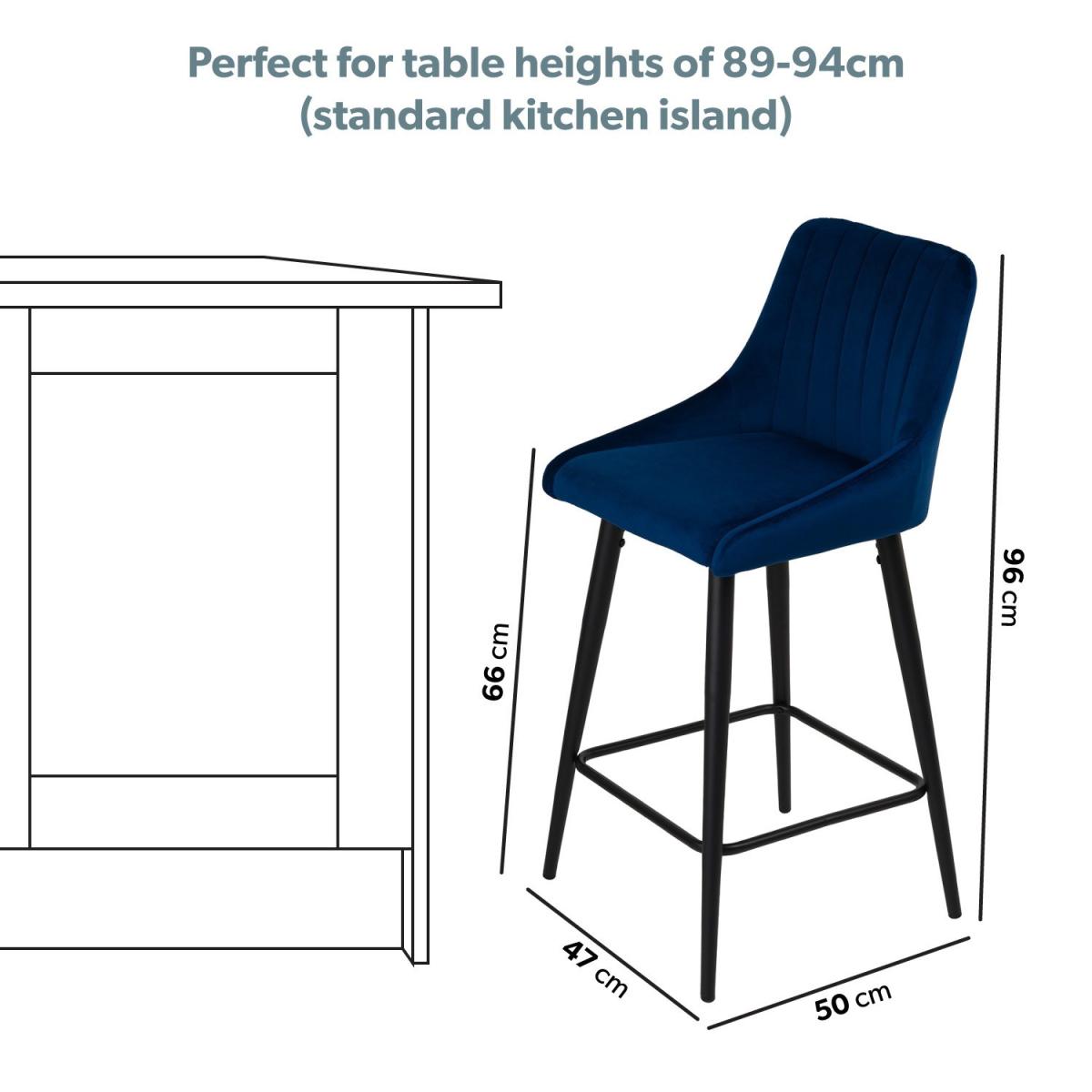 Navy Velvet Kitchen Stool with Back - 66cm - Macie
