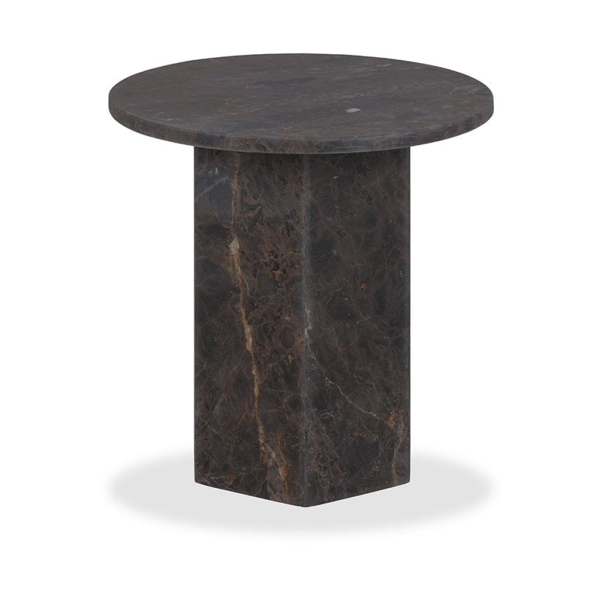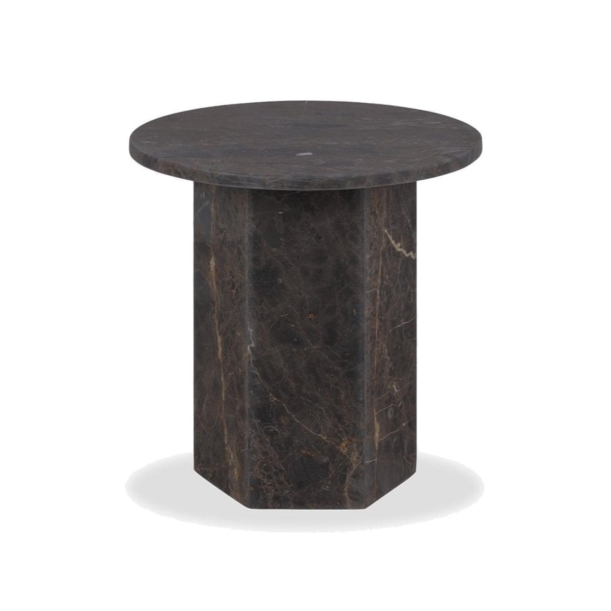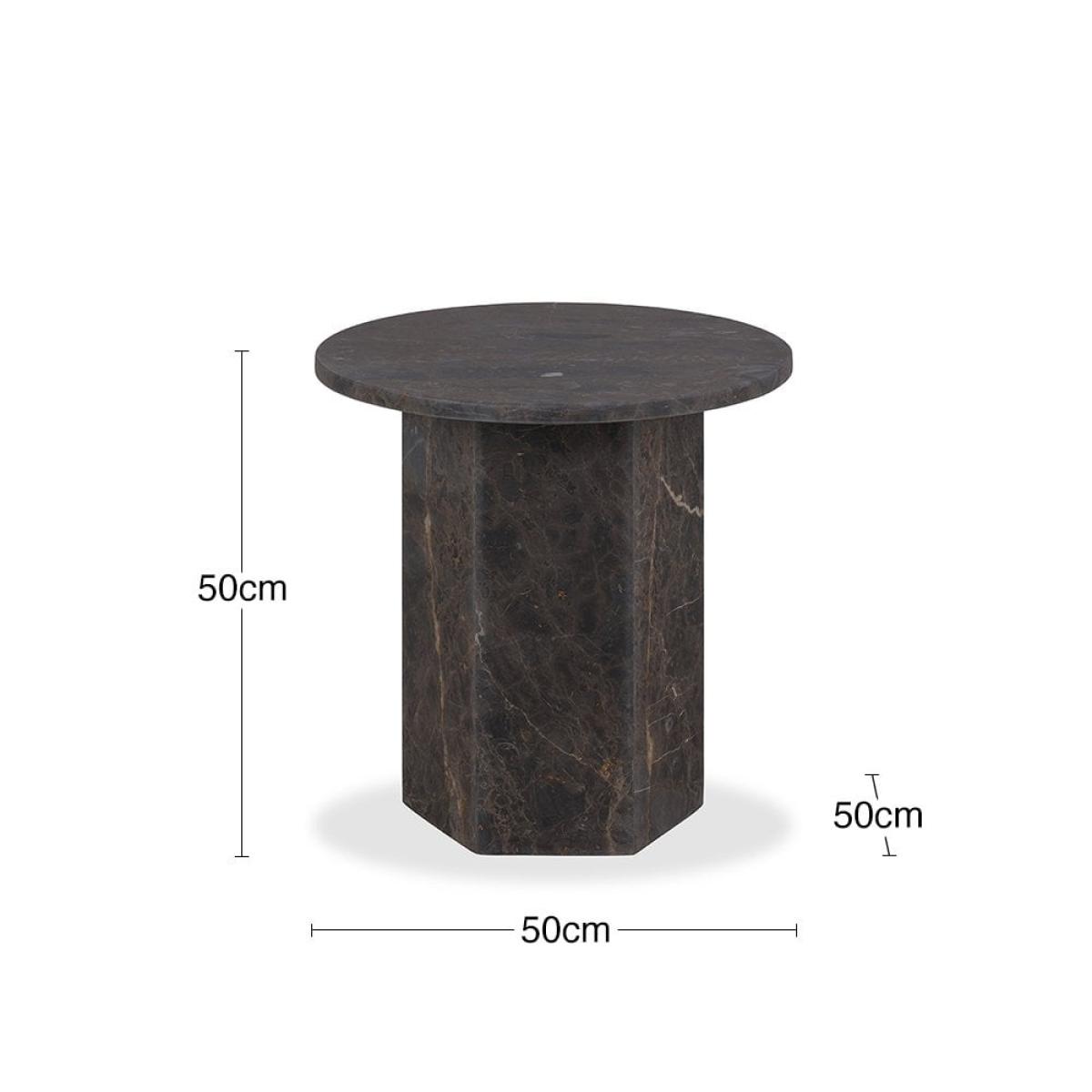 Crafted from marble in deep greys and browns, the Naxos Marble Side Table is an effortless fusion of Italian design and functionality. The perfect statement piece, this natural stone side table is a sculptural design that draws inspiration from Roman and Ancient Greek influences. Note the hexagonal marble pillar base and curved round top, all in the same marble for a refined elevated look. This product is handcrafted from natural marble, making each piece unique with naturally occurring texture, pattern, and colour. These variations should be seen as part of the beauty of the design that makes this a truly one-of-a-kind piece.