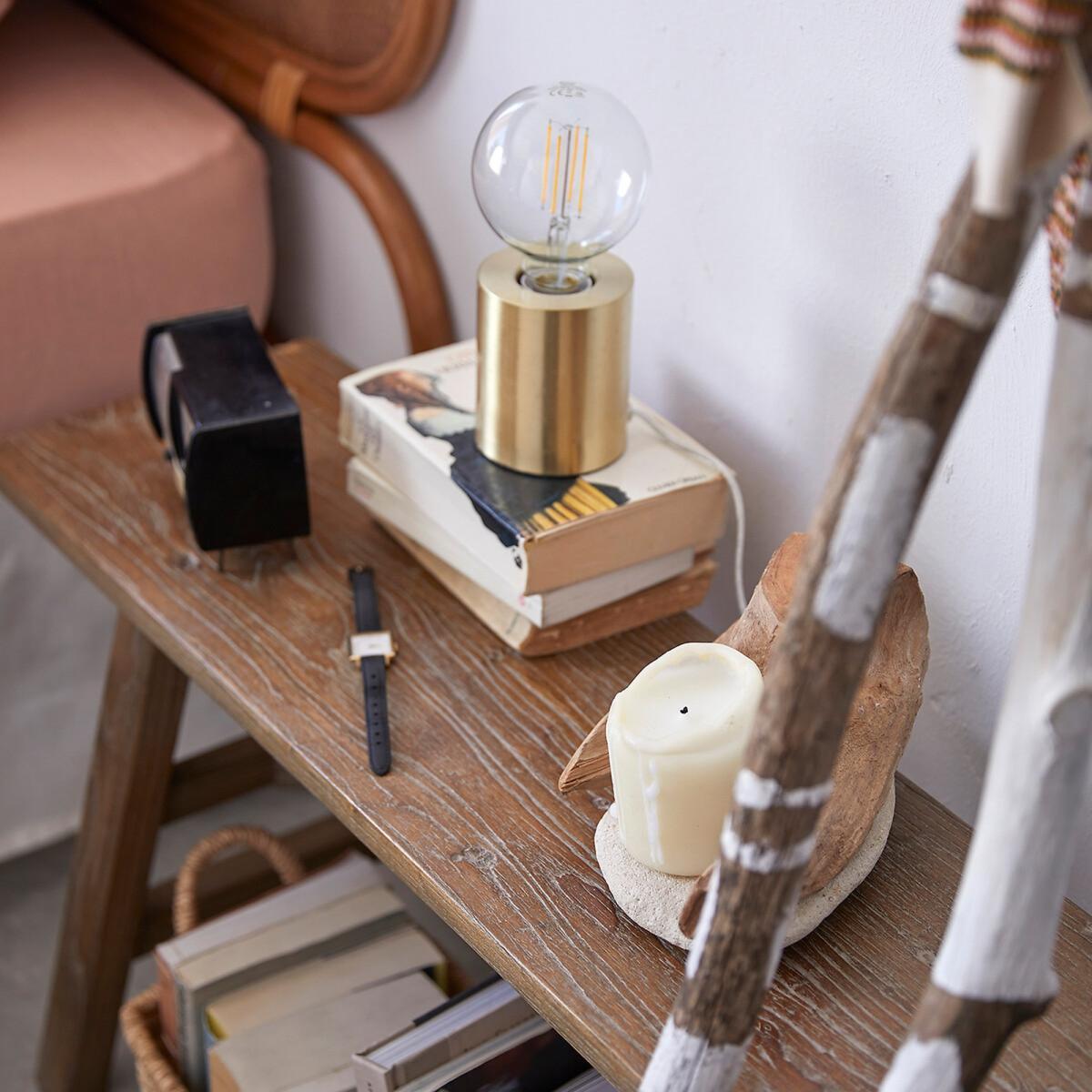 With a solid, simple base in a stunning brass finish, our Naya lamp will add an on-trend touch to your home. Paired with a decorative LED filament bulb, it will make a stylish and original statement while providing a warm and inviting glow.