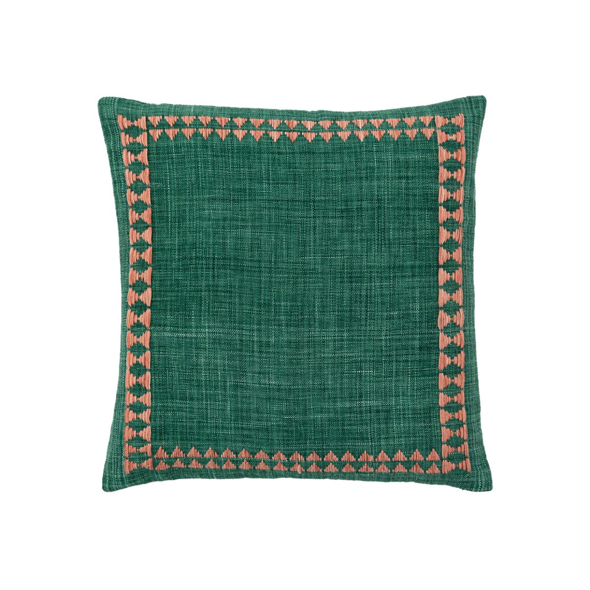Naya Embroidered Border Cushion in Green