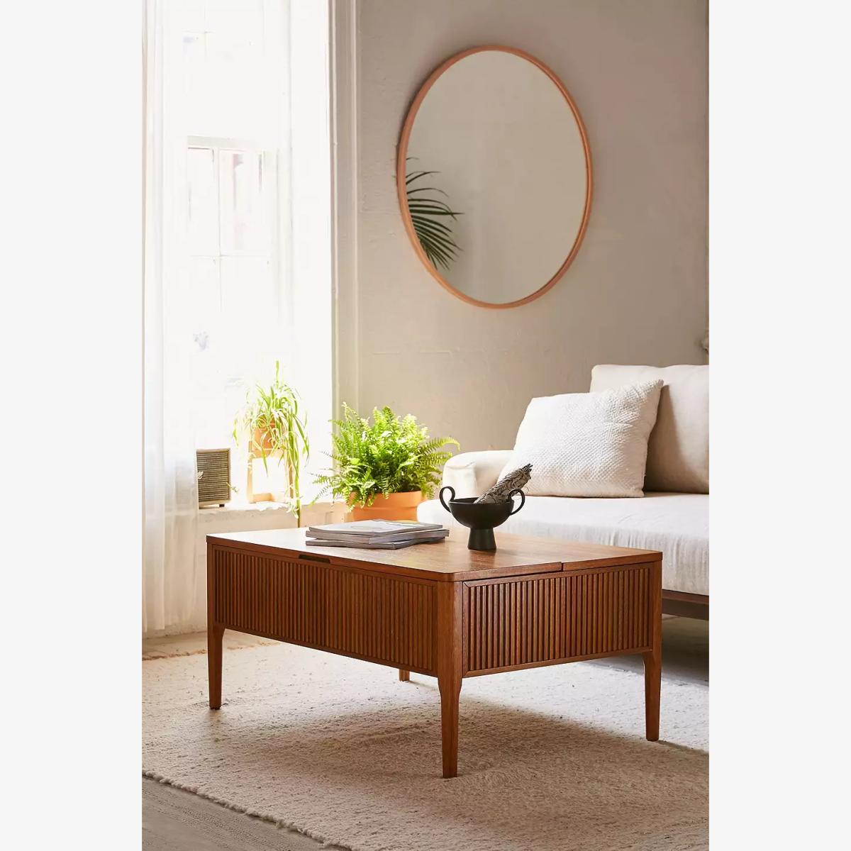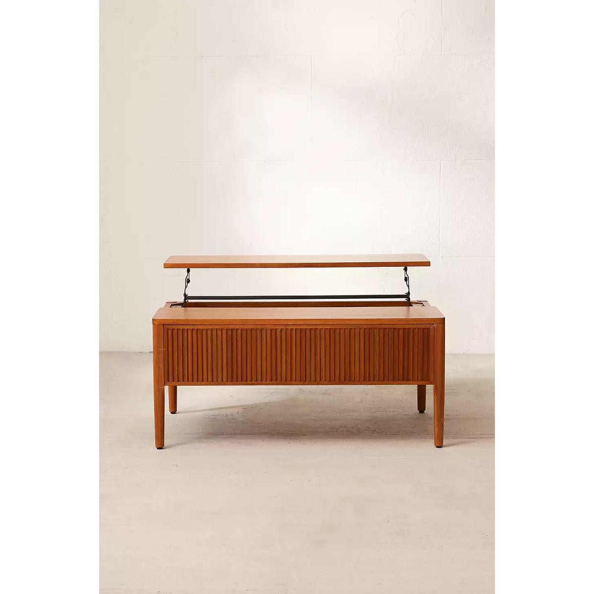 Functionality meets mid-century style in the Naya coffee table. Featuring clean lines and faceted detailing all around, this versatile coffee table is complete with a lift-up shelf that hinges upwards to offer an extra surface. Available exclusively at Urban Outfitters. **Content + Care** \- Assembly required - instructions and hardware included \- MDF, Acacia, Eucalyptus \- Wipe clean **Size** \- Dimensions: L: 96.5cm x W: 63.5cm x H: 43.2cm \- Leg height: 40.6cm, removable \- Clearance: 20.3cm \- Weight: 81.57 lbs \- Shipping package dimensions: L: 113cm x W: 74.9cm x H: 33.7cm \- Shipping package weight: 92.6 lbs
