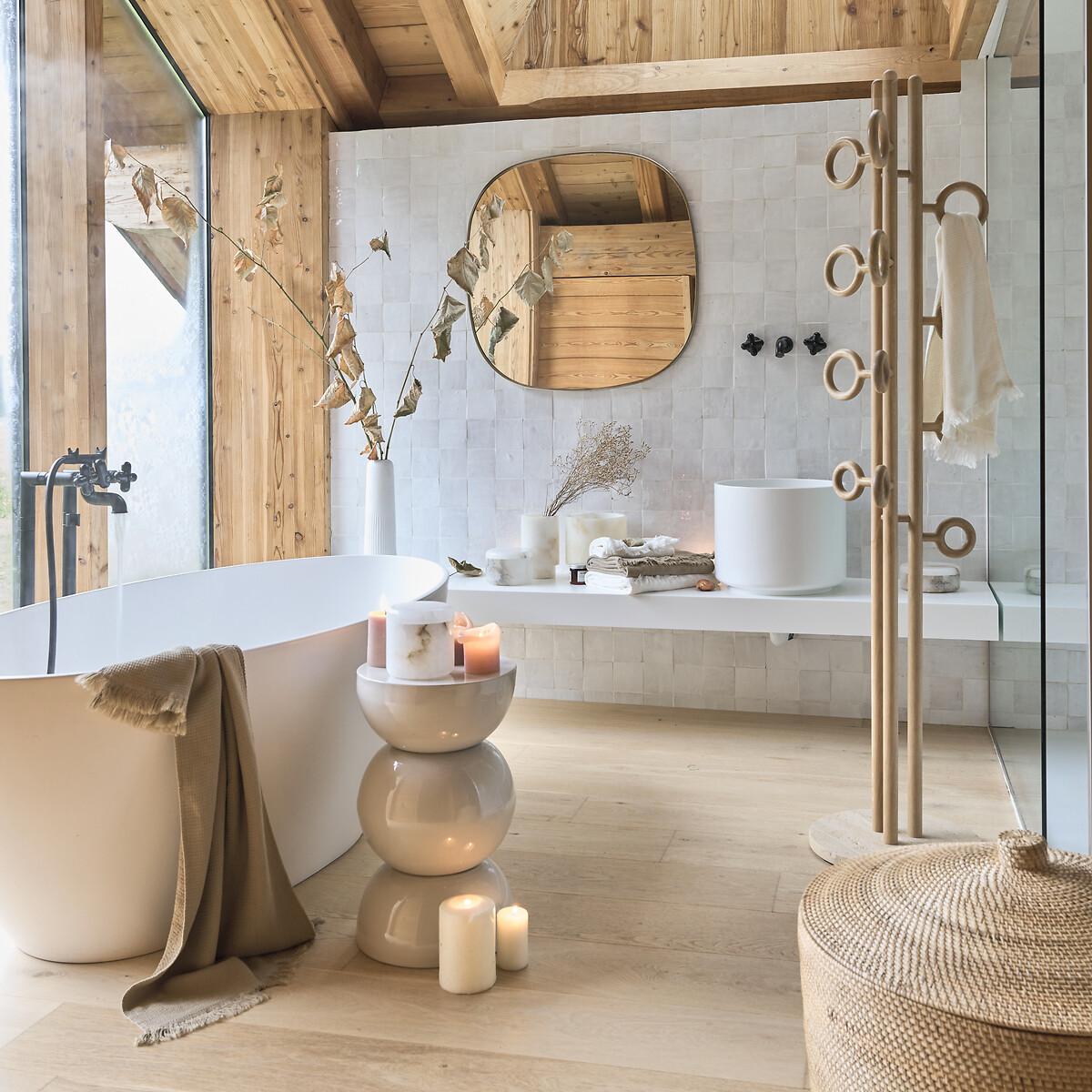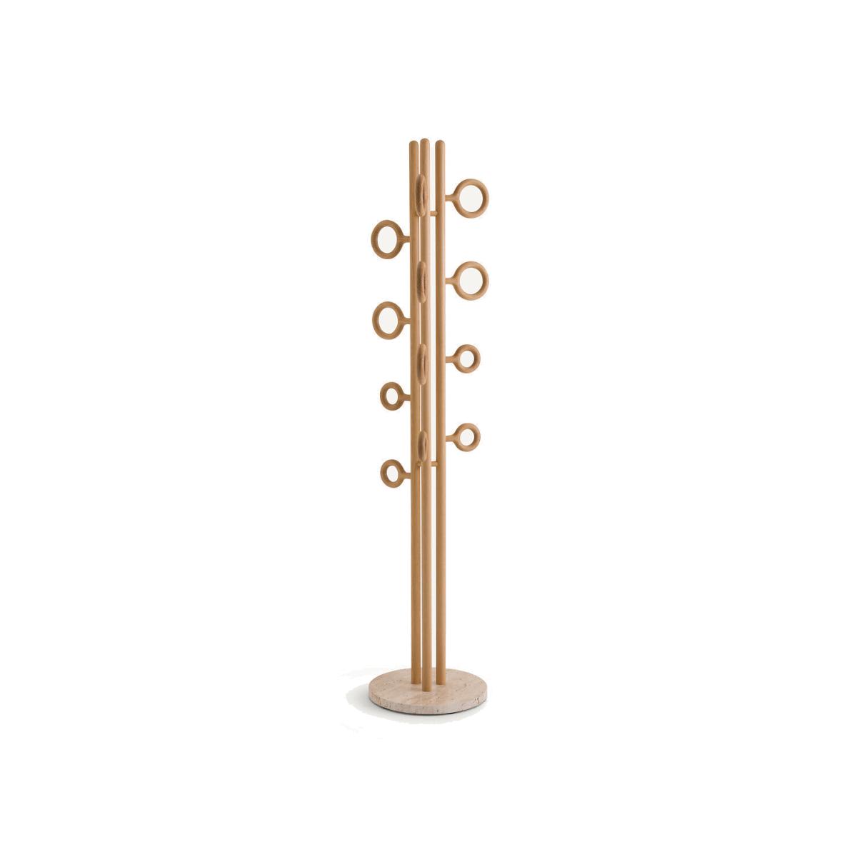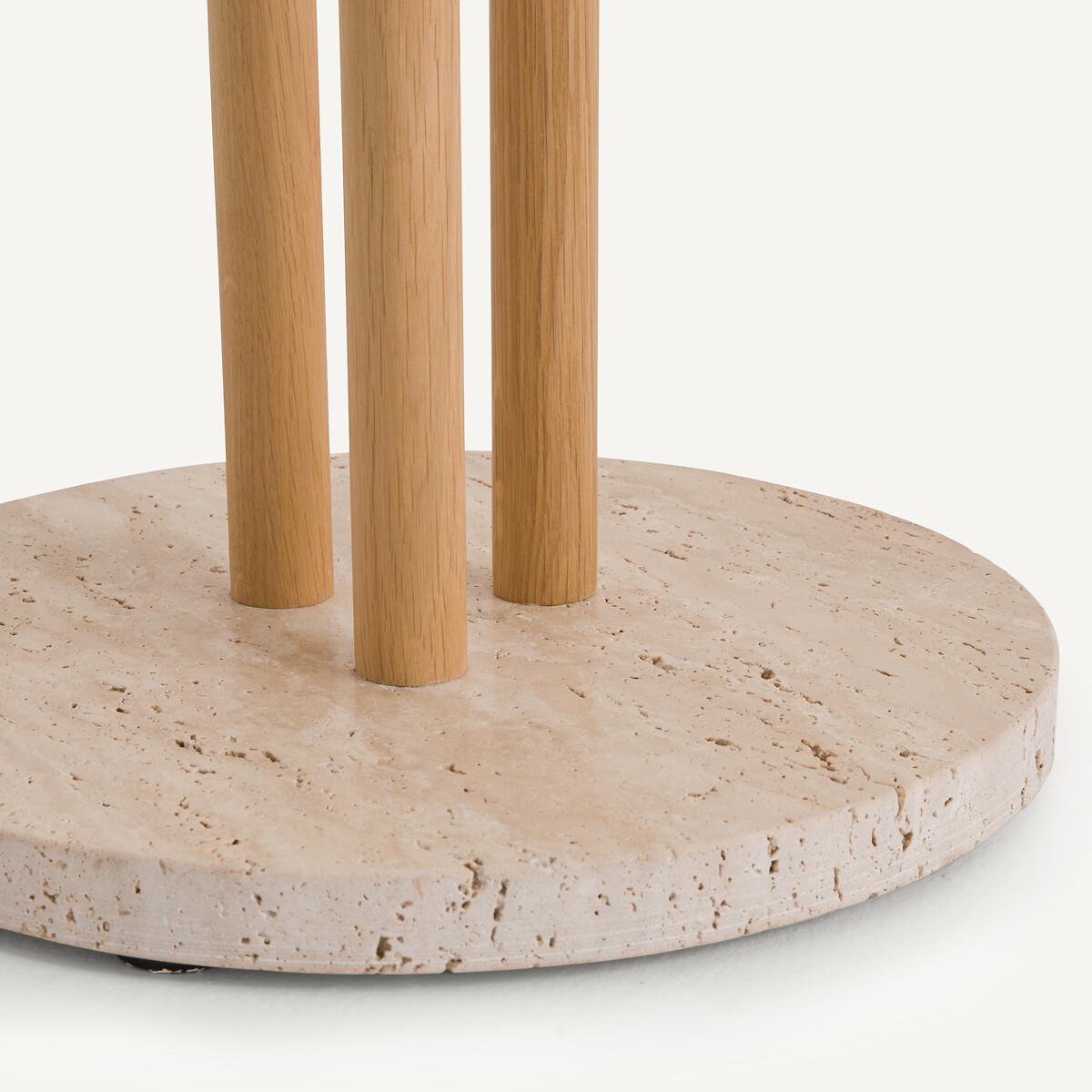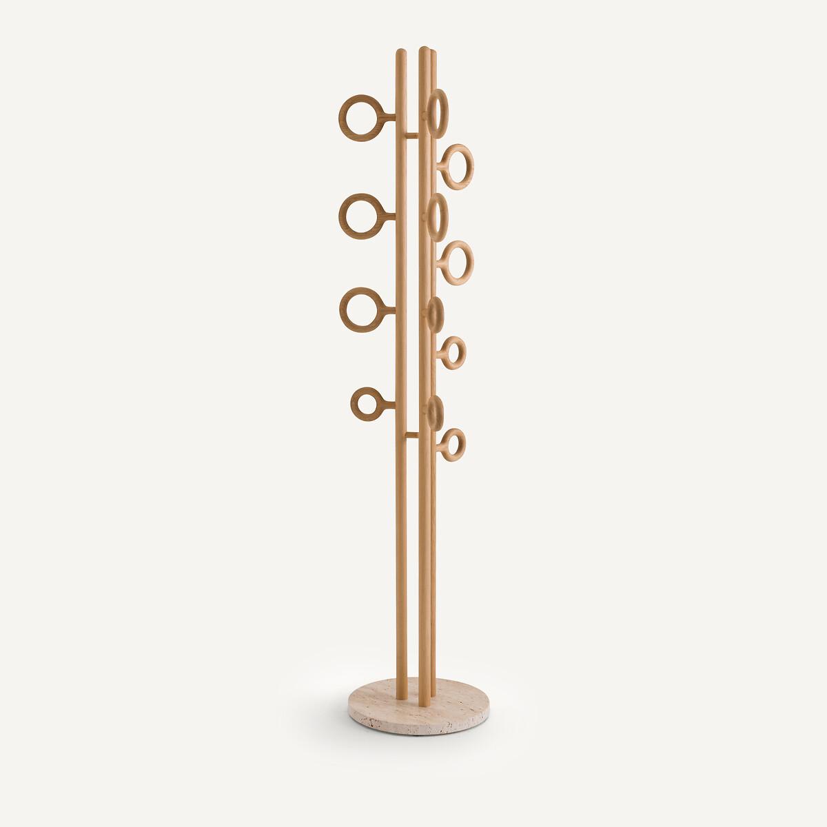 A sculptural object in itself, in solid oak and travertine. The Nayati coat rack will accommodate hats, jackets, bags and umbrellas as well as a collection of stoles or scarves. Inspired by the clear and refined line of Thonet chairs, Nayati is a decorative and functional piece with the AMPM signature. Product Details • 3-pole structure connected by 2 spacers, branches and rings, in solid FSC-certified oak, nitrocellulose finish with natural colour appearance and bleached effect • 12 rings • Travertine base, each piece is unique. Quality Info • Wood is a living material. The differences in shades, grains and knots reinforce its character. Over time it may crack slightly. It is a natural process due to variations in temperature and humidity.. Care Advice • Travertine is a porous and heat sensitive material. Care information: Immediately wipe up any spilled liquid with a white cloth dipped in lukewarm water and wrung out. Dimensions Overall • Diameter: 42cm • Height: 176cmDelivery:. Sold pre-assembled. It will be delivered to your door. Note! Please check that all access points are large enough to accommodate your delivery (doors, stairs, lifts). • WOOD FROM SUSTAINABLY MANAGED FORESTS. FSC® certified wood comes from forests that are environmentally, socially and economically well managed. Dimensions and weight of parcel • 1 parcel • L46 x D45 x H185cm, 25kg