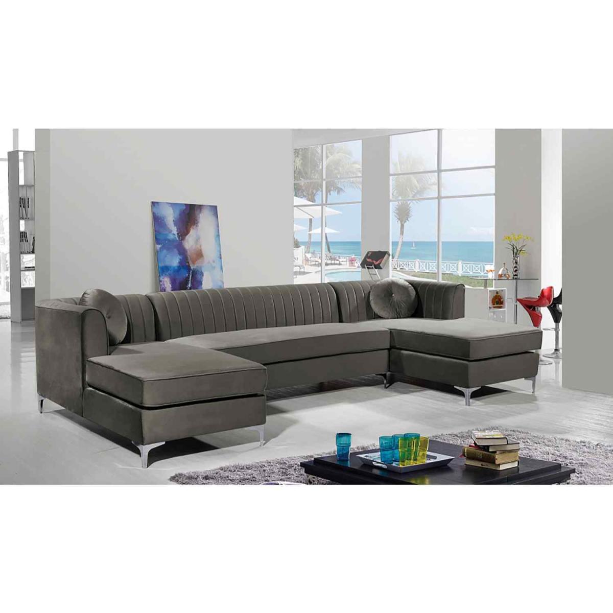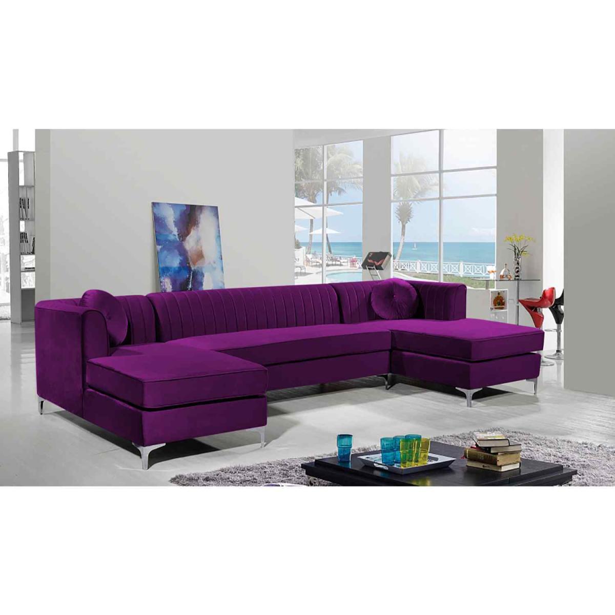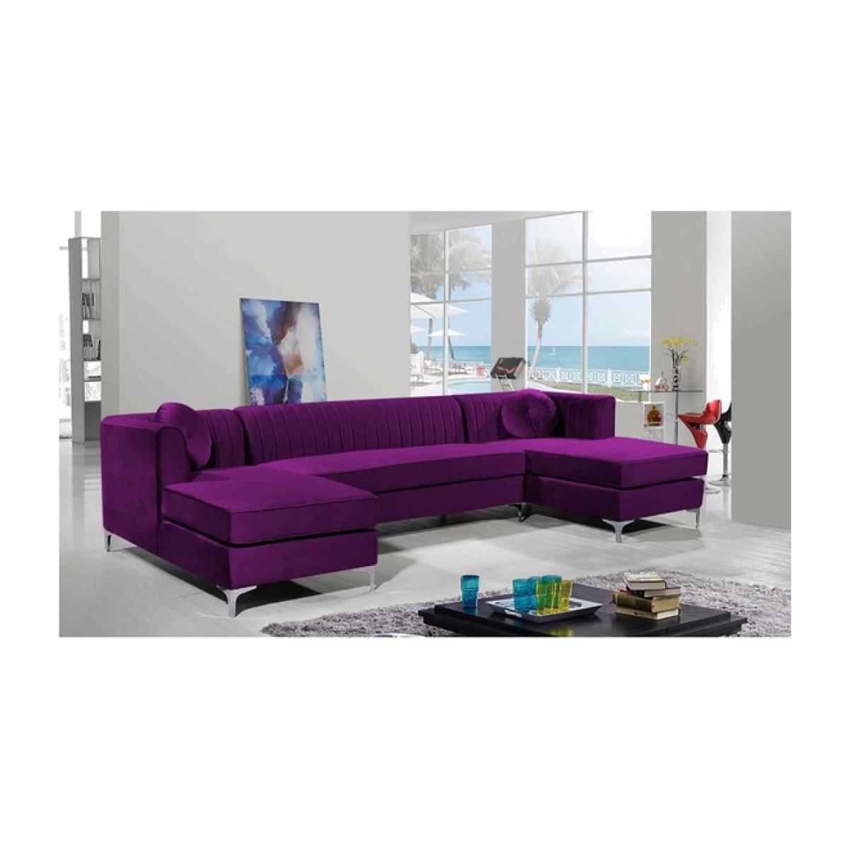 Nearla Fixed Back Fluted Large U Shape Sofa - Purple