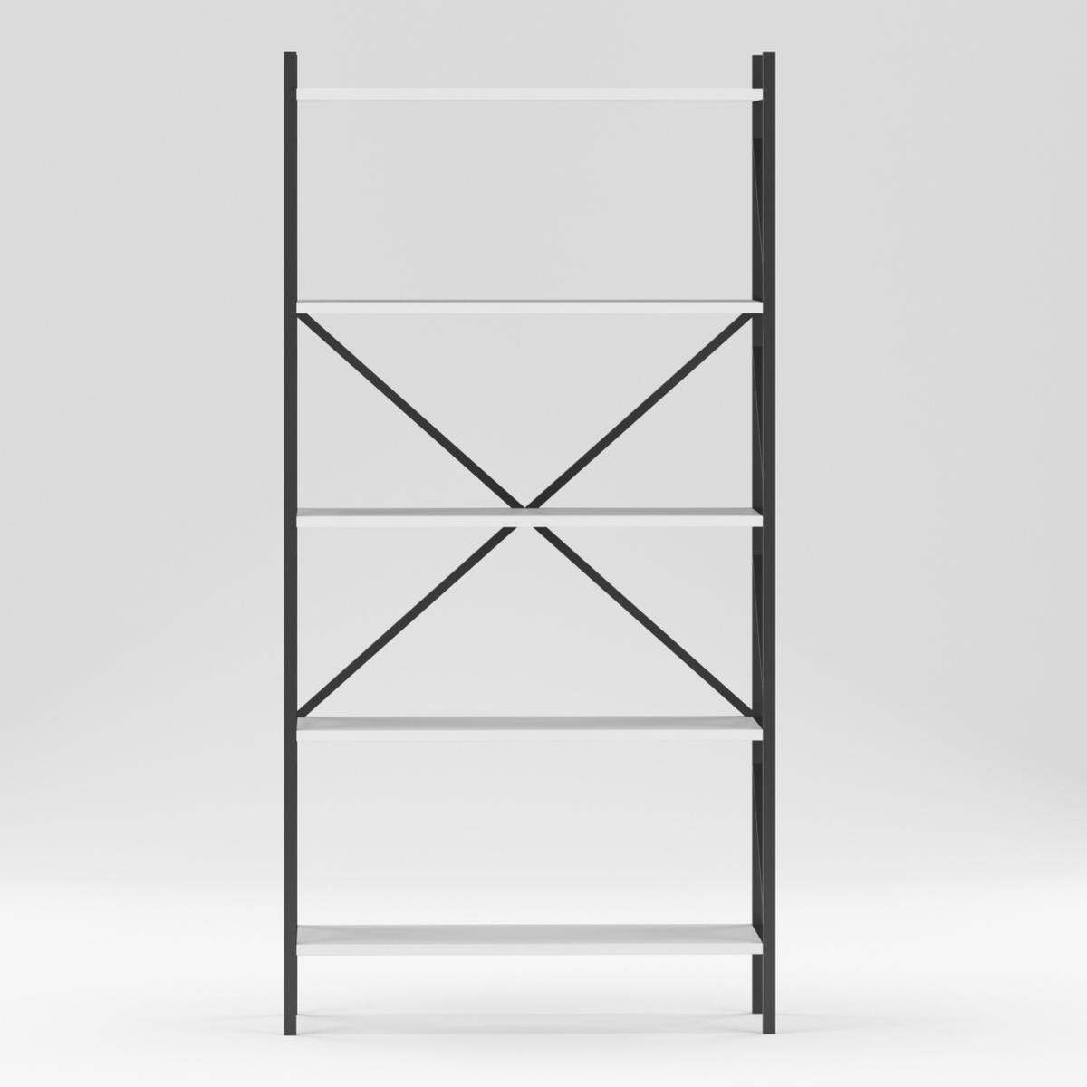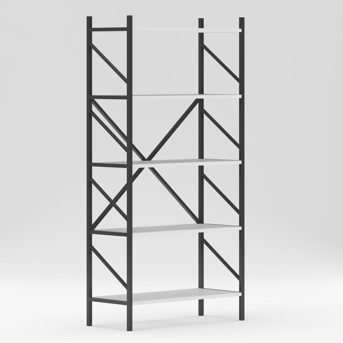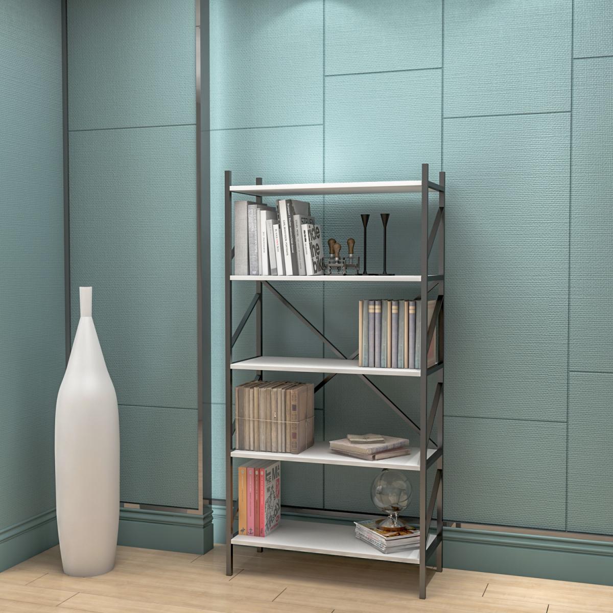 Exposed hinges and a metal frame give this bookcase its striking industrial appeal, adding a dash of edgy style to your home. Available in a range of finishes to suit your existing decor, the bookcase has four shelves ideal for storing not just books but art, houseplants, records, electronics, media, and more. The result is an exciting picture and a piece of furniture that is robust, attractive, and functional at the same time. Perfect for bookworms if you like to lounge on the couch or in bed with a good book on a grey, rainy day, or if you always need to have access to helpful specialist literature in your office, this simple bookshelf is just the thing. Assembly is required.