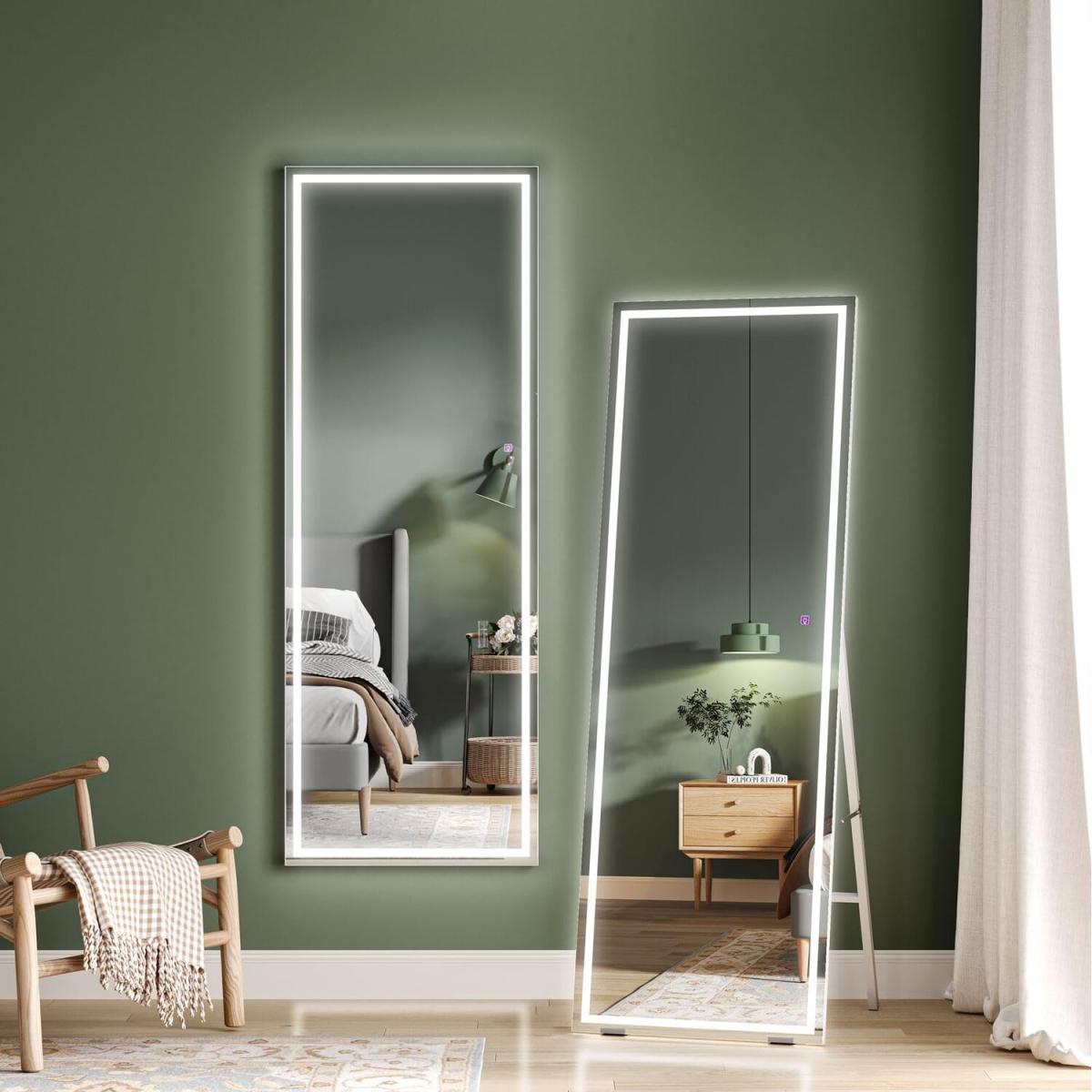 The brightness and light temperature of this full length mirror are controlled by a smart touch button. Short press the switch to change the color temperature into white light, warm light or yellow light. Long press the switch for seconds to adjust the brightness to your liking. Our standing mirror is clear and more HD. The shattered glass with the explosion-proof membrane will not be spilled out even impacted by an external force, which is more protective. Suitable for living room, bedroom, closets, foyer, corridor, dressing area..etc Lighted mirror made of high quality anti-rust aluminum alloy frame which can effectively extend the useful life. The vanity mirror is designed to be used as a floor mirror or wall mounted hanging mirror to fit your various needs. Simple and elegant style will match nicely with your furniture. 140 x 50cm standing floor mirror provides bright daylight illumination for your cosmetic and dressing needs. Adopt upgraded energy-efficient LED strip with 50,000 hours lifetime, light more concentrated and brighter. That can provide you many viewing angles and see your entire figure.