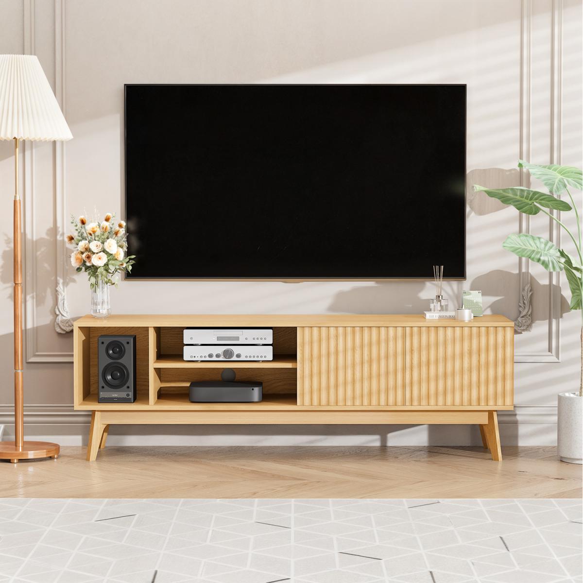 NECHE Modern 1.5m White TV Stand with Storage - WOOD COLOR