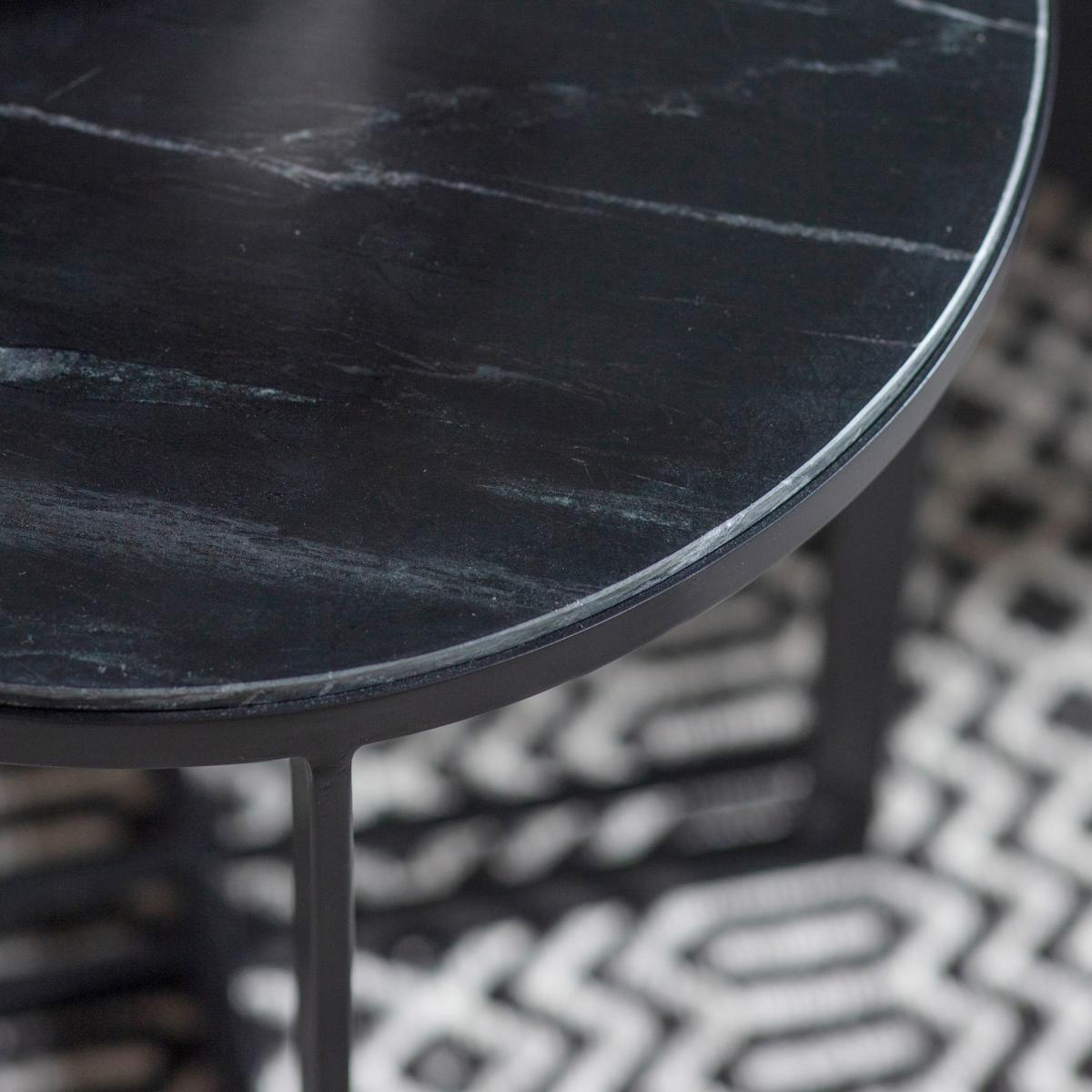 With its black Indian marble top which sits beautifully on the matt black metal base, this side table makes a stunning addition to a room offering a sophisticated apartment living look. A matching coffee table is available, and both tables are also offered in silver which feature grey marble and a ‘brushed steel’ finish for the base. Thanks to the marble being a natural material, each table is unique.