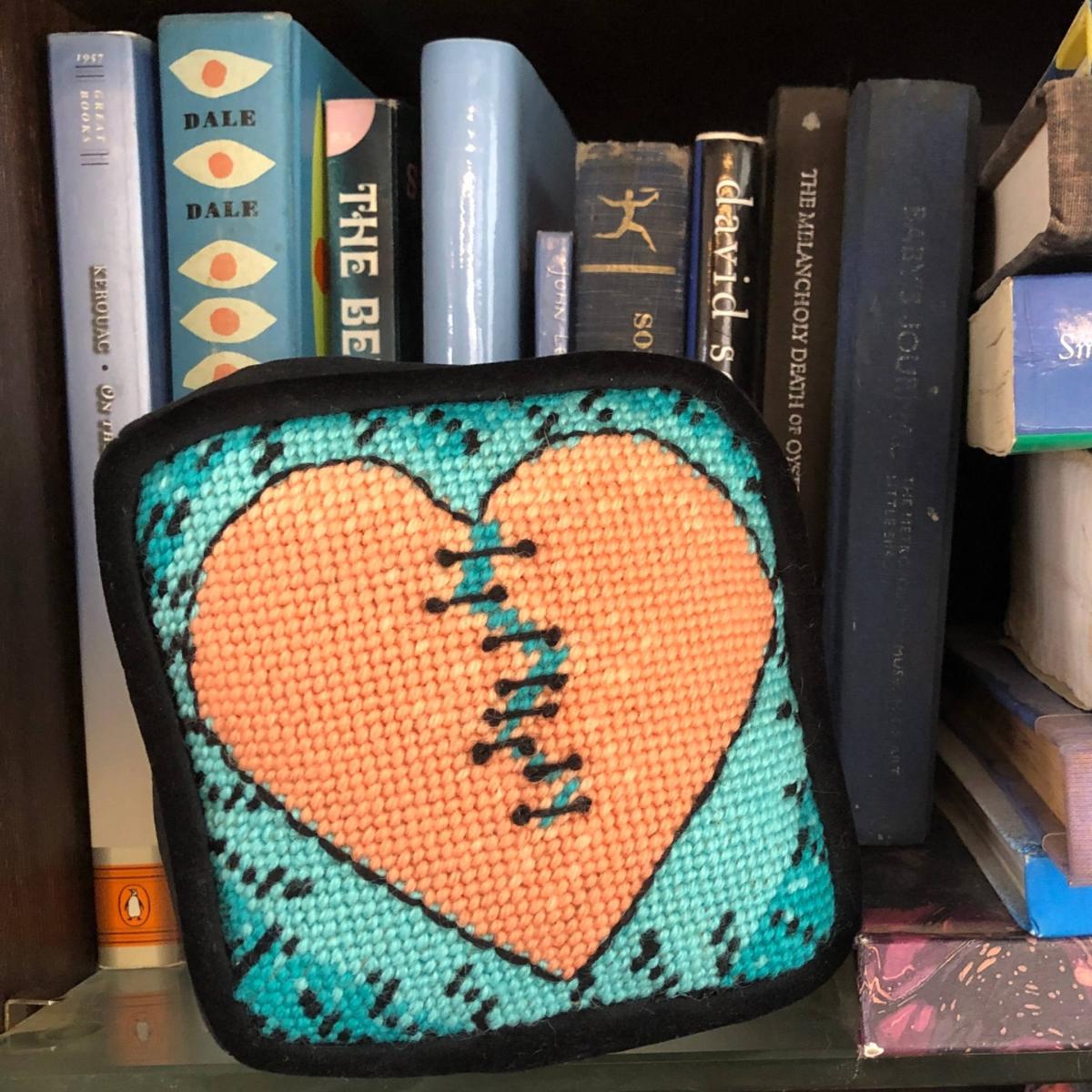 We're not broken, just bent. Pillow represents the heart, bursting open with growth! This little pillow box adds interest to your bookshelf or tabletop. It's one of a kind, stitched stream of consciousness by Cheryl Westbrook, Founder / Designer of Mommani Threads. This little pillow box adds interest to your bookshelf or tabletop. delivered to you in eco-friendly packaging