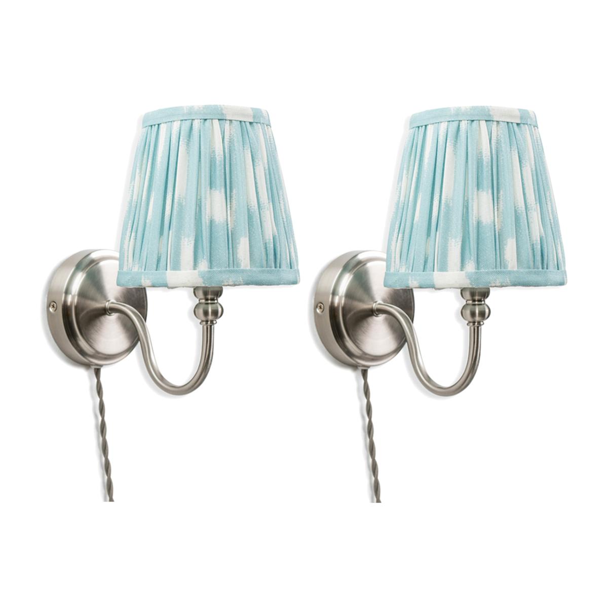 Statement metal combines with a fabric shade for a classic look that will fit in with both modern and traditional interiors. This twist on a traditional-style wall light brings a pop of colour and charm to any room. The lampshade is made from high-quality material in a silver brushed chrome finish, with a gathered fabric shade to create a pleated effect. This timeless design light simply plugs in and features a twisted design cable with an in-line rocker switch for easy use. Great for your home office, beside your bed or even in your cosy reading corner.
