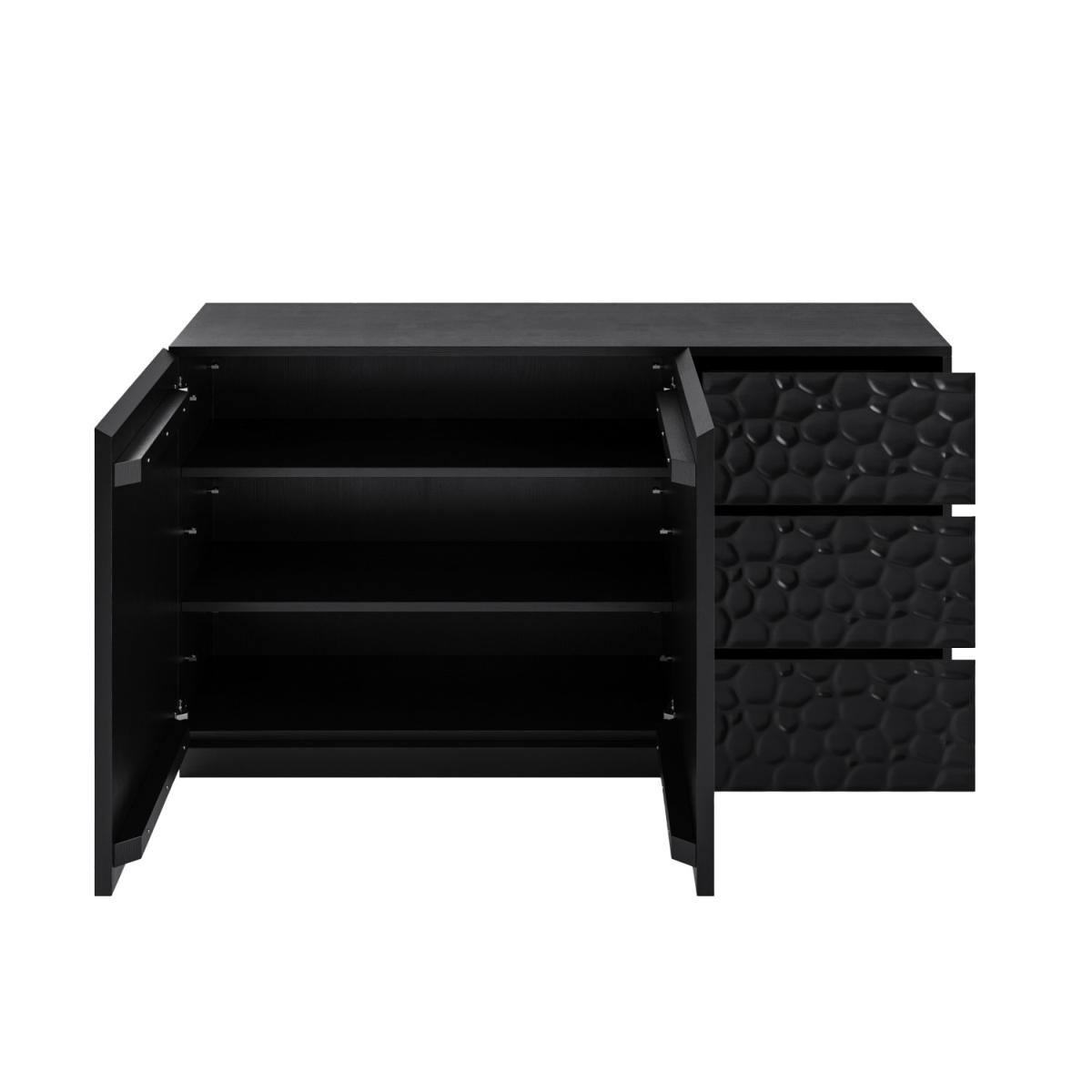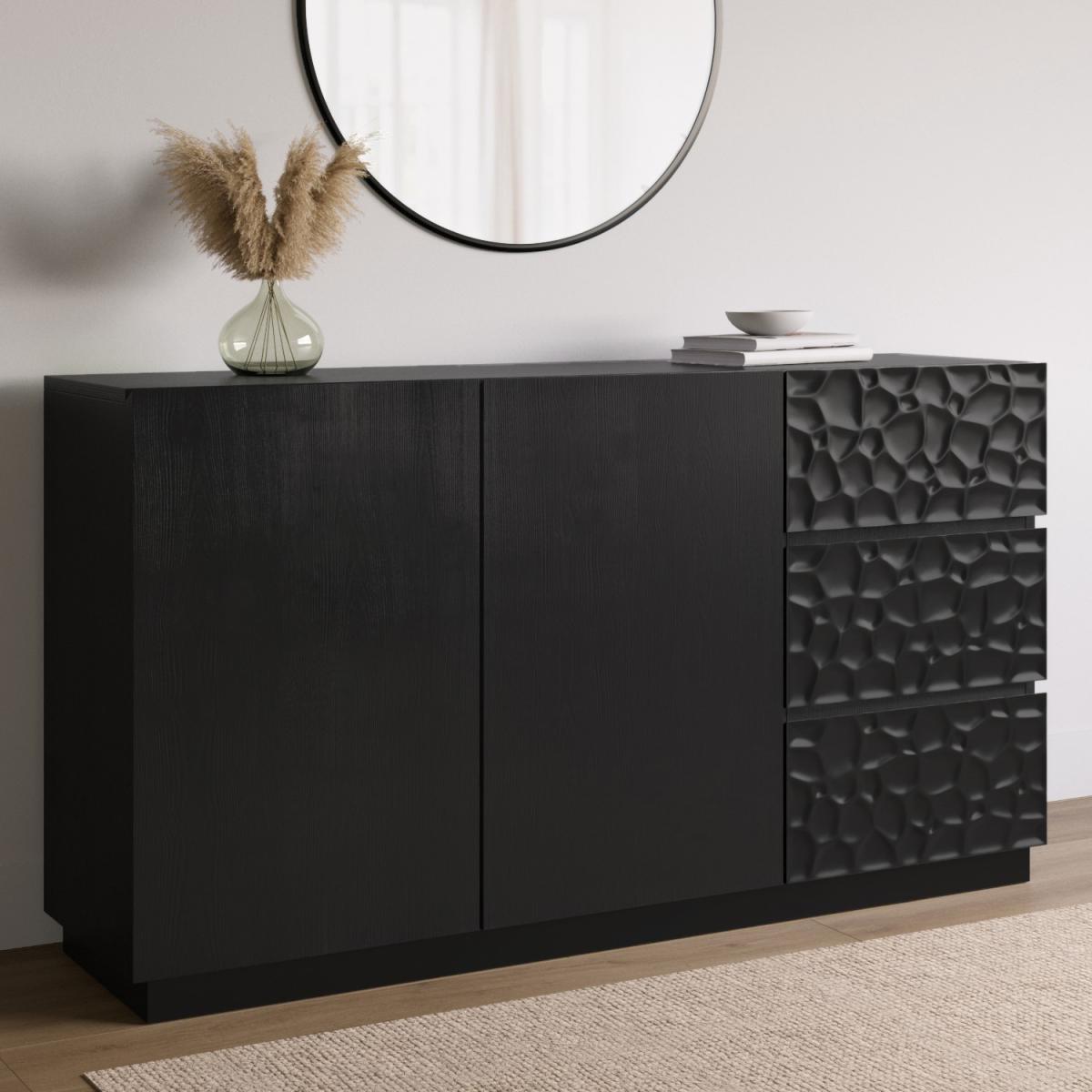 Bring the accents of your living space together with this large statement sideboard. It's immediately striking thanks to the handcrafted wood carvings on the drawer fronts that create its chic textured surface. There are three spacious drawers and a cupboard with two doors and two adjustable shelves to accommodate your storage needs. With plenty of storage options, you'll soon be clutter-free in the space it sits. Delivered fully assembled, you can use it right away.