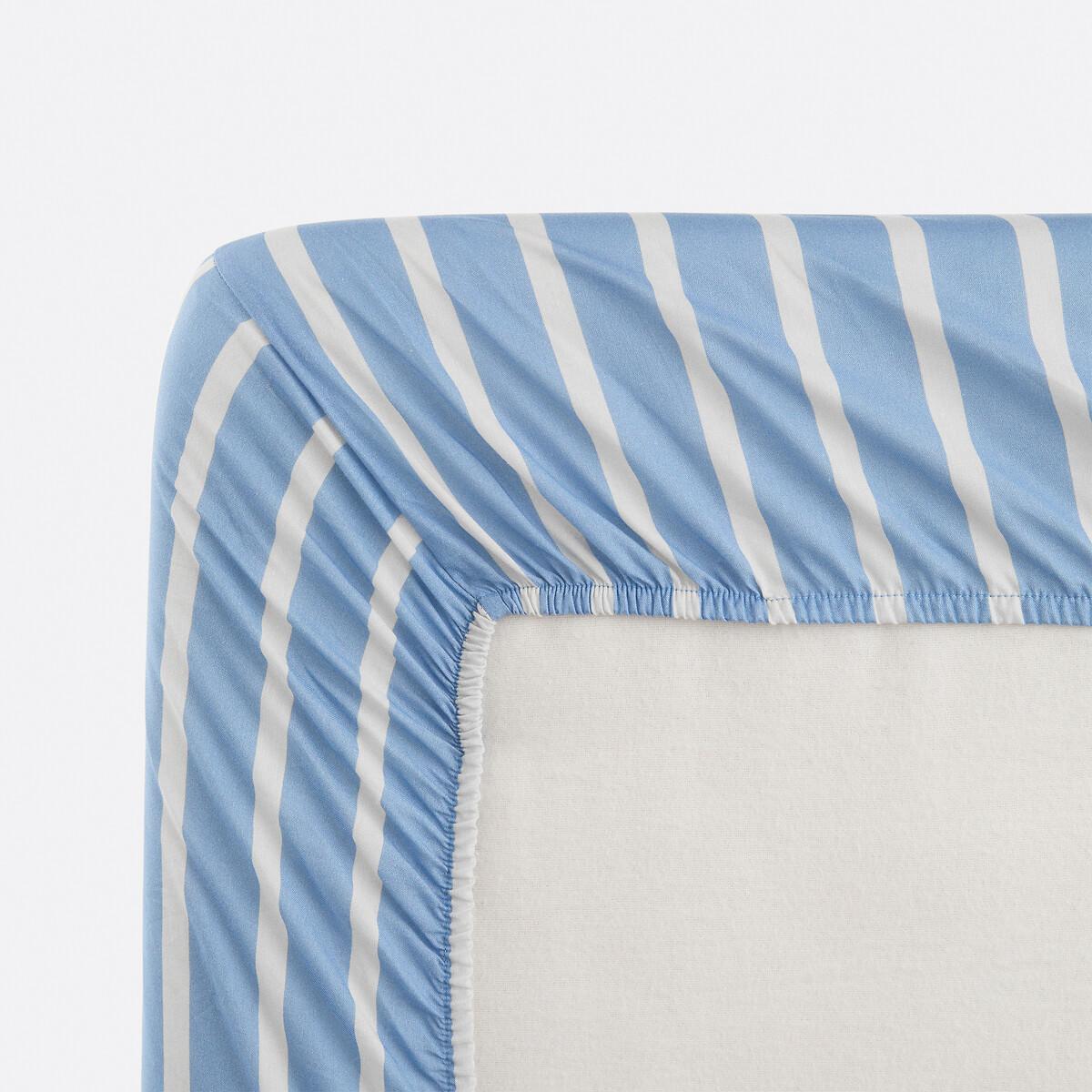 Fresh, contemporary stripes in blue and white for the Neilo fitted sheet. It will be the dream companion for athletes in their briefs ! Designed by La Redoute Intérieurs. Cotton is part of our daily lives. We love it for its suppleness and softness. Easy Care, it is ideal for the beds of young and old alike!Product Details • 100% cotton, 115g/m2 • Contains 30% recycled cotton • 144 thread count • Striped • For mattress height 25cm. As the seasons go by, add your own personal touch by mixing Neilo bed linen with our range of Scénario plains. Care Advice • Machine washable at 60°C • By washing your laundry at 40°C instead of 60°C, you limit energy consumption. Dimensions • 90 x 190cm : Single • Recycled cotton. Using recycled cotton is all about conserving resources and reducing waste. • OEKO-TEX® Standard 100. Standard 100 certification by OEKO-TEX® tests textile products for harmful substances via an independent, international label.