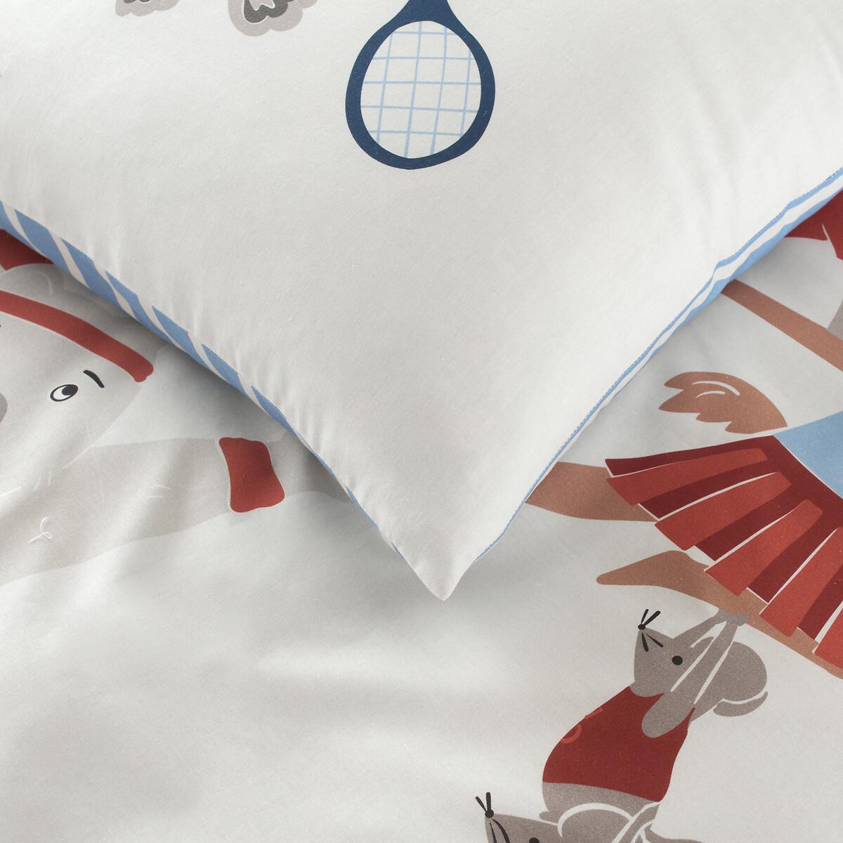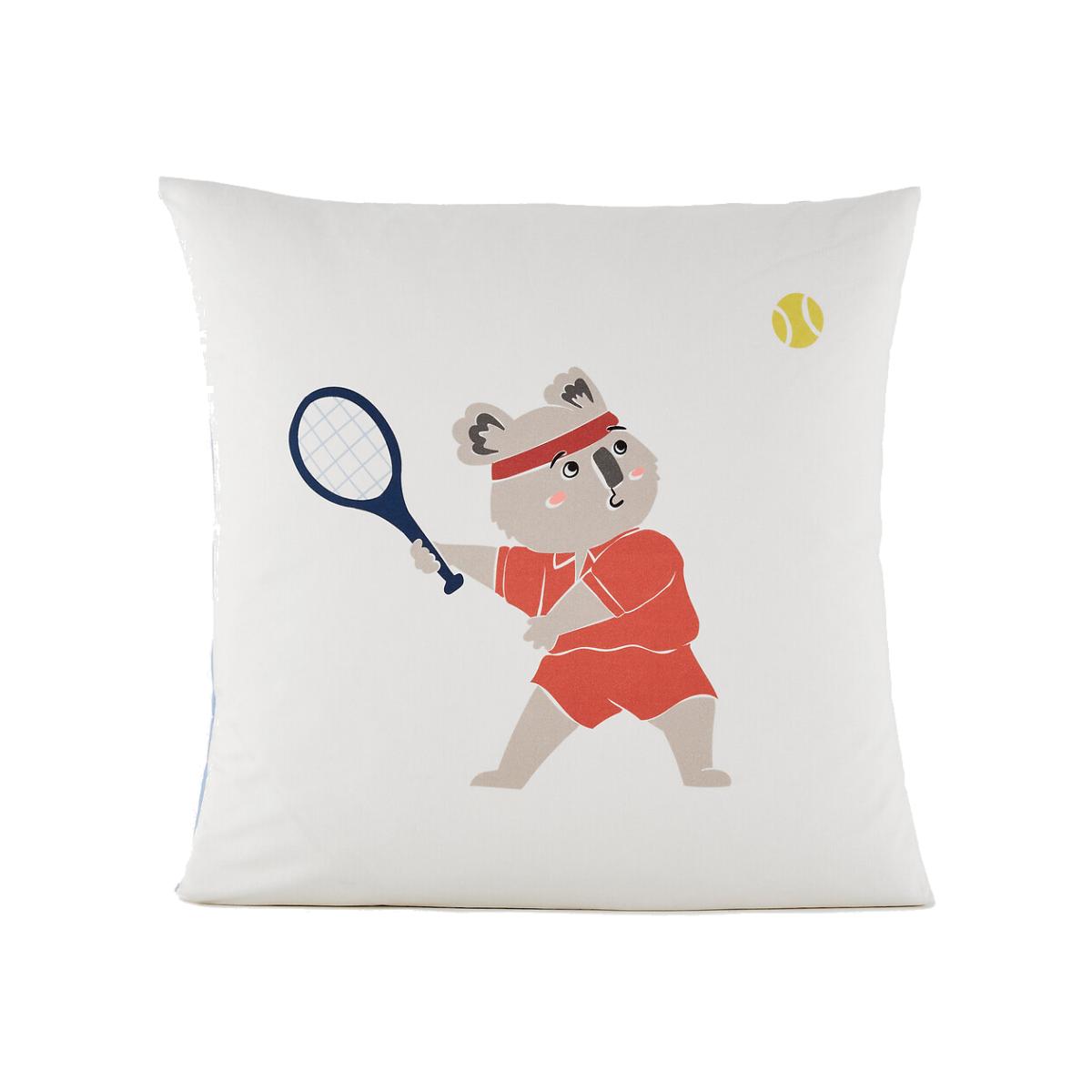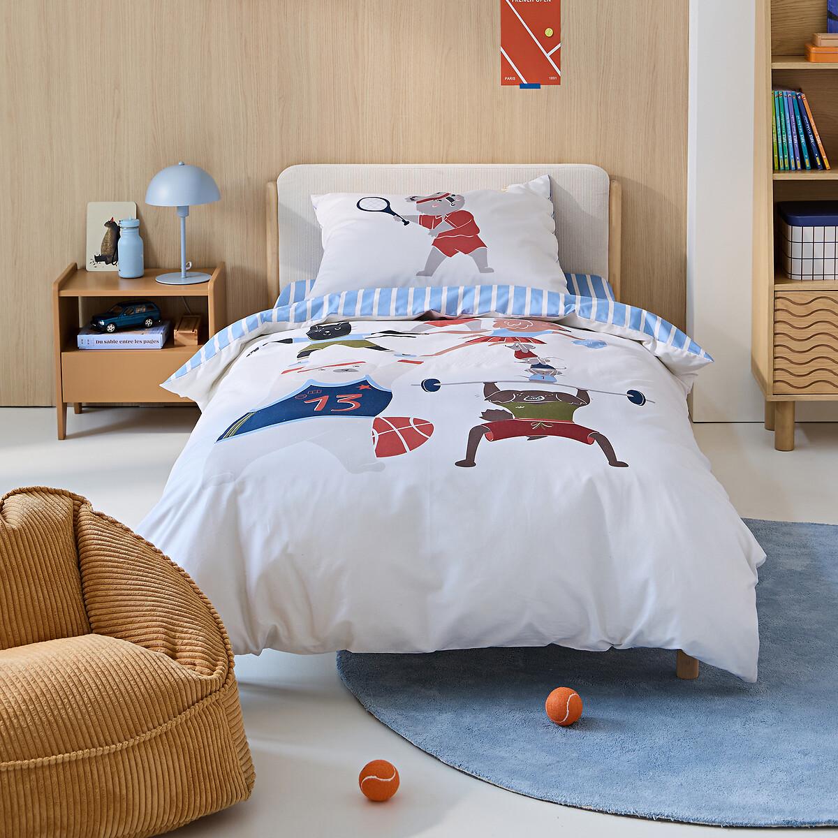 Acrobatic gymnastics, tennis or weightlifting... Find playful, cute little characters on these fresh, contemporary bed linens. The Neilo pillowcase will accompany the dreams of little sportsmen and women!Designed by La Redoute Intérieurs. Cotton is part of our daily lives. We love it for its suppleness and softness. Easy Care, it is ideal for the beds of young and old alike!Product Details • 100% cotton, 115g/m2 • Contains 30% recycled cotton • 144 thread count • Animal print on front, stripes on back. As the seasons go by, add your own personal touch by mixing Neilo bed linen with our range of Scénario plains. Care Advice • Machine washable at 60°C • By washing your laundry at 40°C instead of 60°C, you limit energy consumption. Dimensions • 50 x 70cm: Rectangular pillowcase • 63 x 63cm: Square pillowcase • Recycled cotton. Using recycled cotton is all about conserving resources and reducing waste. • OEKO-TEX® Standard 100. Standard 100 certification by OEKO-TEX® tests textile products for harmful substances via an independent, international label.