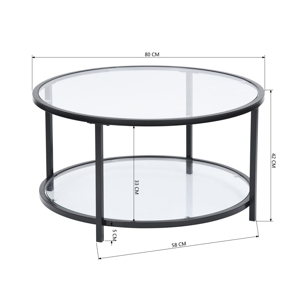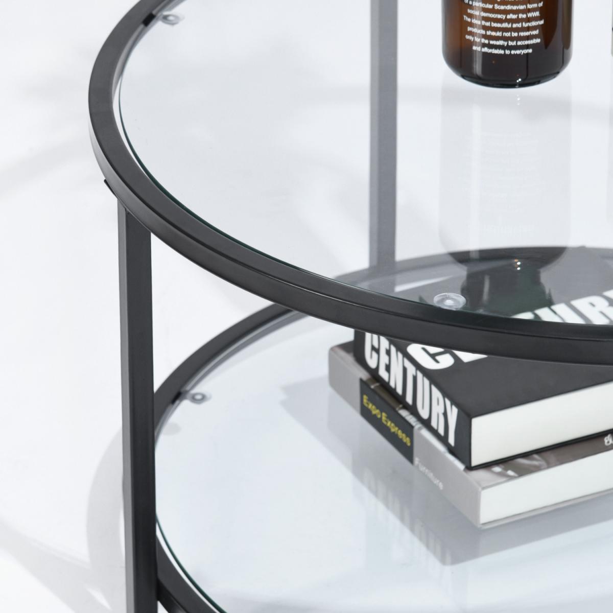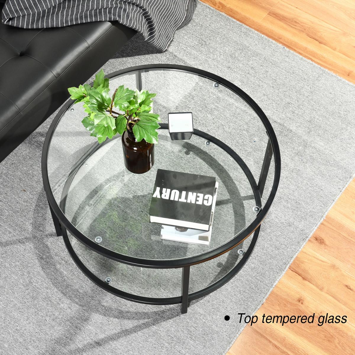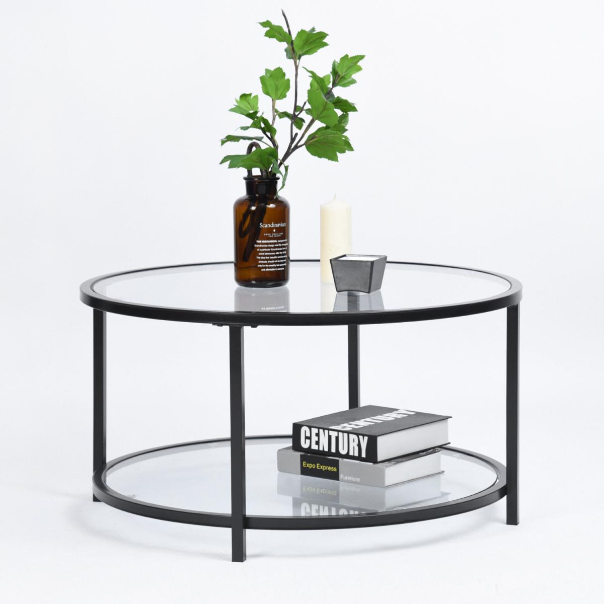 This Neka Round Double Layer Coffee Table is double-glazed top and bottom for storage, it's suitable for small parties and will embellish your room. A round coffee table with a glass top keeps the room open and bright. Its top and shelves provide ample space for a variety of uses. Each piece in this collection comes with a hand hammered iron frame with tempered glass. Perfect for displaying collectibles or displaying books.