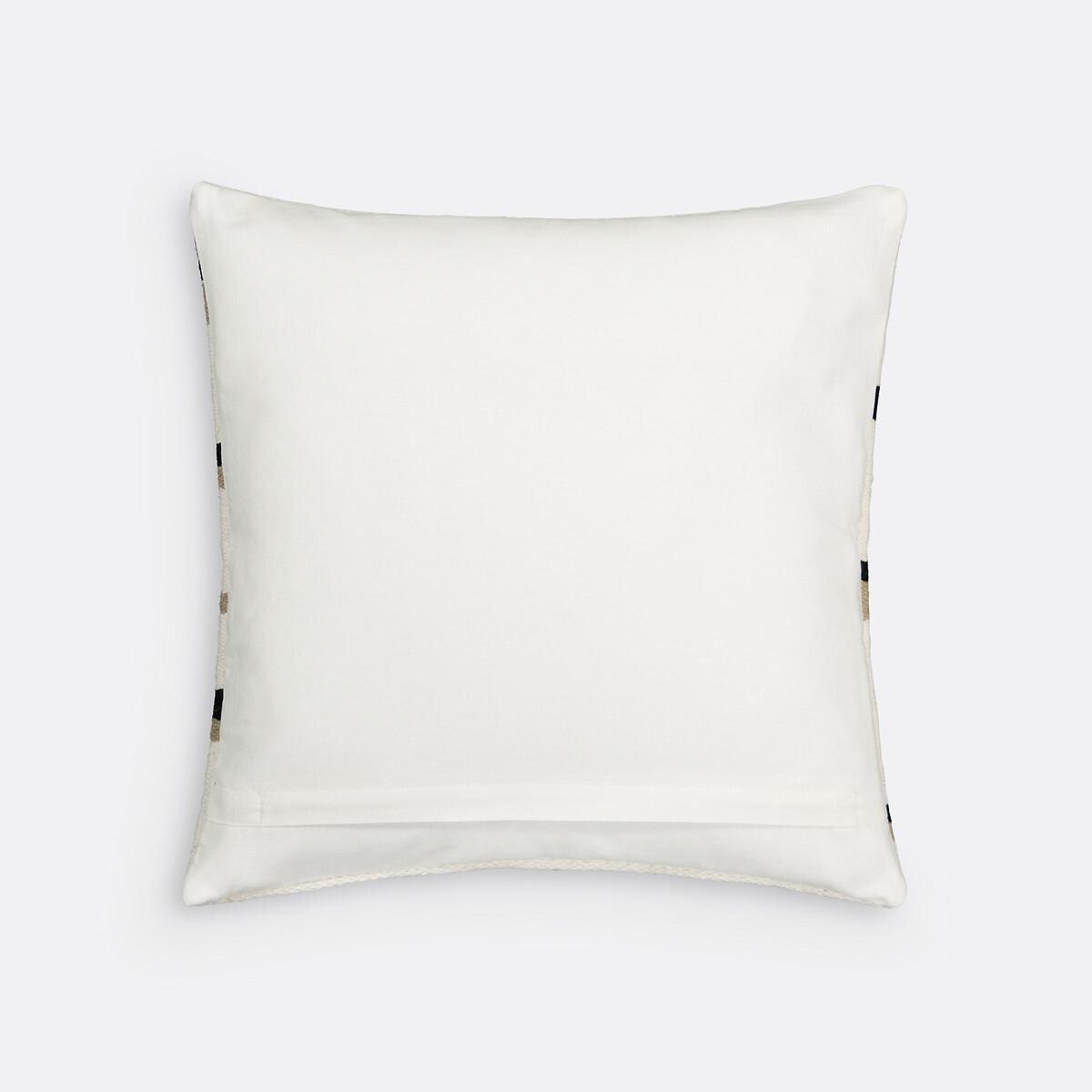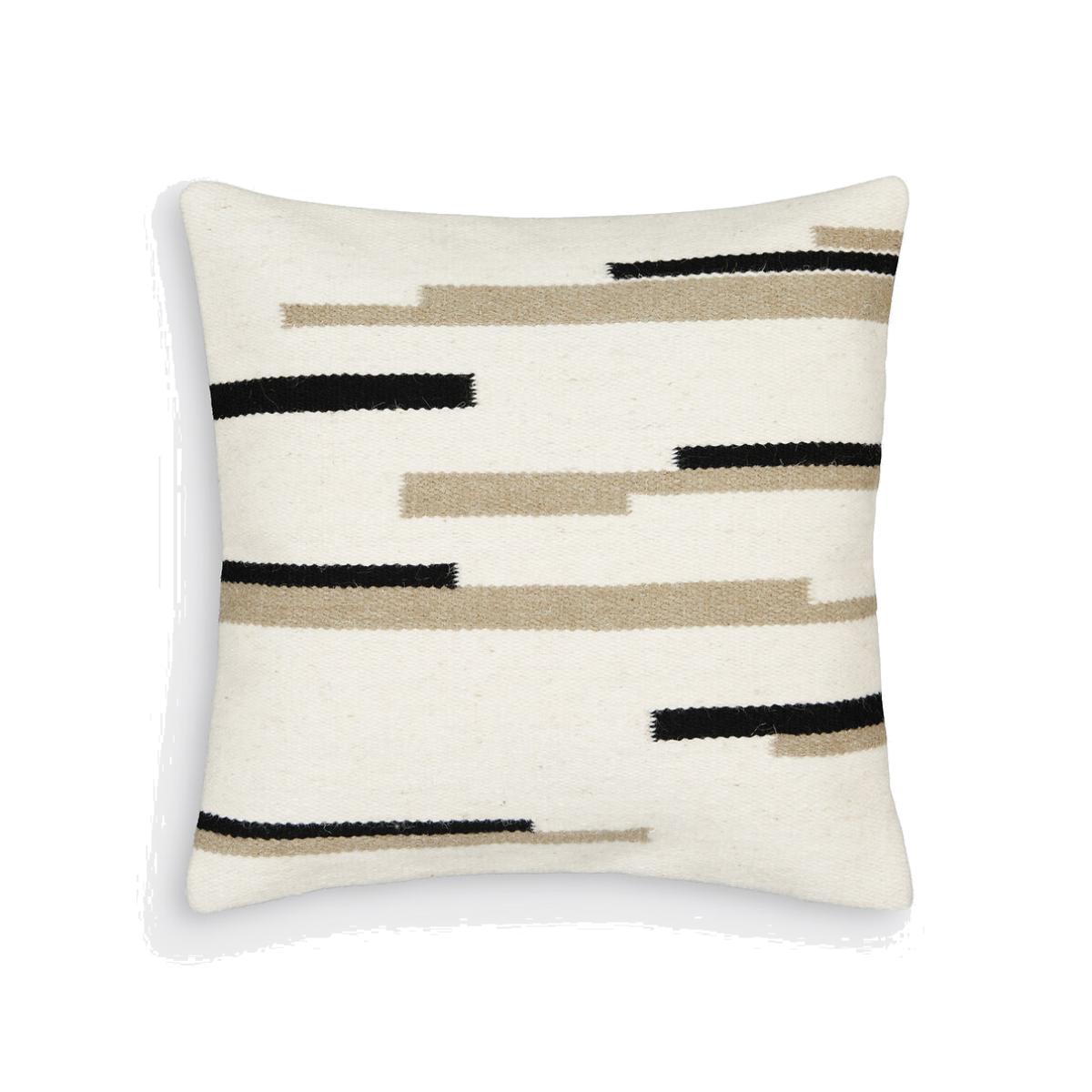 A chic geometric design composed of lines and stripes. The Nelio cushion cover plays with contrasts and adopts a subtly tribal style. Product Details • Front woven 91% wool, 9% cotton • Plain back • Zip fastening • Dimensions • 45 x 45cm • OEKO-TEX® Standard 100. Standard 100 certification by OEKO-TEX® tests textile products for harmful substances via an independent, international label.