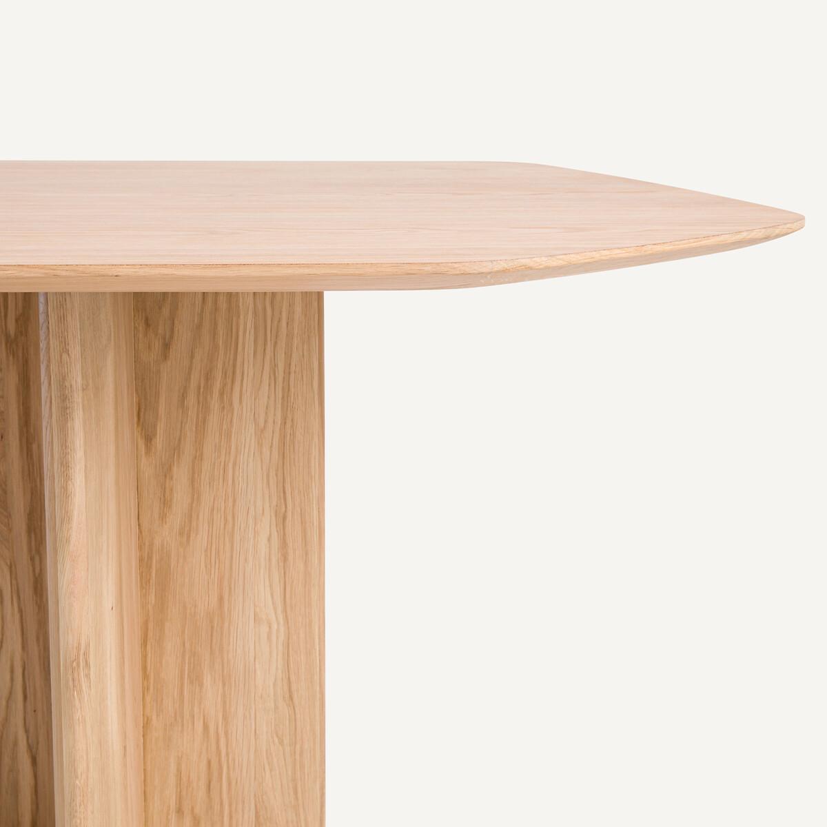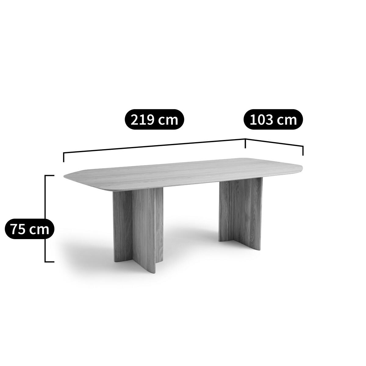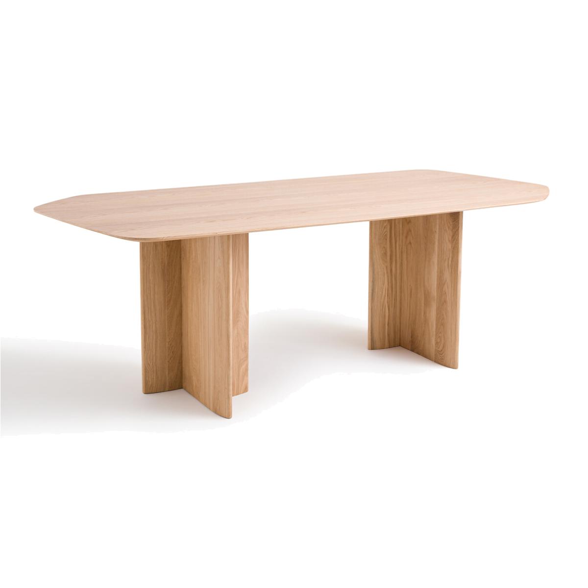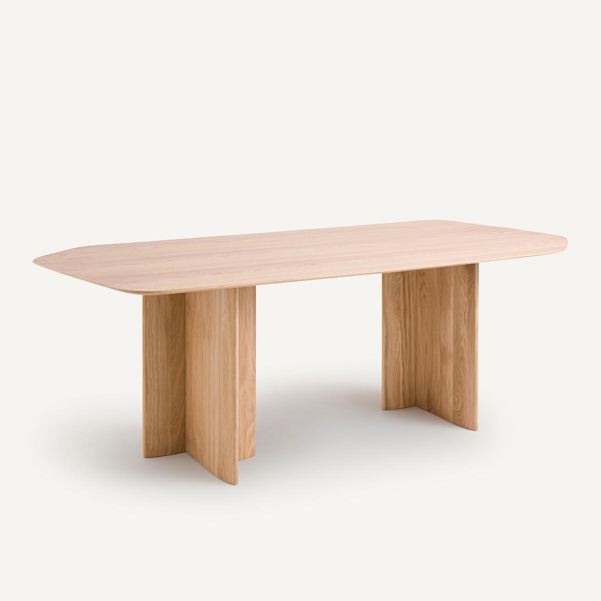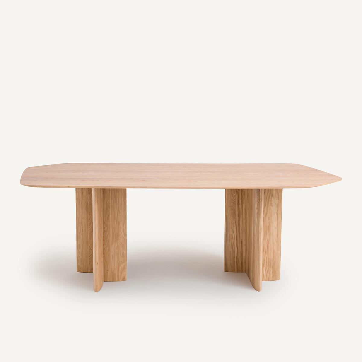 Created by our designers, the Nella table has an organically shaped top surmounting a sculptural base in solid oak. Generous and timeless. Product Details • Organic shaped tray in oak veneered MDF • Bevelled edges • Solid oak legs • Nitrocellulose finish • Seats 6 to 8. Dimensions • Length: 219cm • Height: 75cm • Depth: 103cmDelivery:. Assembly required. Available for home delivery. Note! Please check that all access points are large enough to accommodate your delivery (doors, stairs, lifts). • WOOD FROM SUSTAINABLY MANAGED FORESTS. FSC® certified wood comes from forests that are environmentally, socially and economically well managed. Dimensions and weight of parcel • 2 parcels • L226 x H10 x D110cm. 52kg • L74 x H80 x D65cm. 67kg