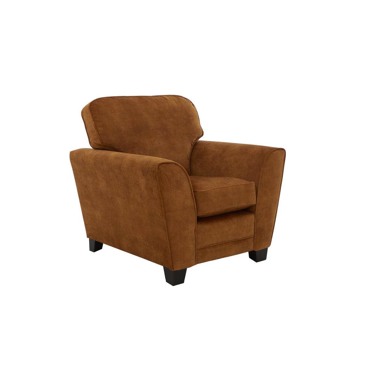Velvety, retro-modern style and exceptional comfort. Cold cure seat interior with a 10 year guarantee. Chic, stylish… and proudly British made. The Nelly fabric accent armchair has all the chic glamour and opulent good looks of an accent armchair, with the added comfort of a sumptuous cold cure moulded foam seat cushion and luxury fibre filled, reversible back cushion. It has a chic, retro-modern silhouette, distinctive curved arms and neatly tailored piping, with removable light or dark wood feet. This roomy accent chair comes in a choice of velvet-feel, chenille or smooth weave fabric in fashionable, sophisticated colours. The chair’s seat cushion comes with a 10 year guarantee. The seat is zig-zag sprung with a firm front edge to help the chair keep its shape, and as the back cushion is reversible this means you can turn it to even out wear, so it will look good for years. The Nelly Gallery accent armchair is part of the Nelly range of sofas, sofa beds, chairs and footstools, beautifully made right here in the UK. Top tip: Some fabrics can show wear on areas of more use or in direct sunlight. To keep your fabric upholstery looking fresh, plump, turn and rotate seat and back cushions regularly if possible. Please read our upholstery care guide for more advice on caring for your fabric sofa or chair. The flattening and shading of heavy wear areas on pile fabrics such as velvet is unavoidable. Pile fabrics may be vacuumed lightly using the curtain attachment, and brushed regularly in the direction of the pile with a soft brush.