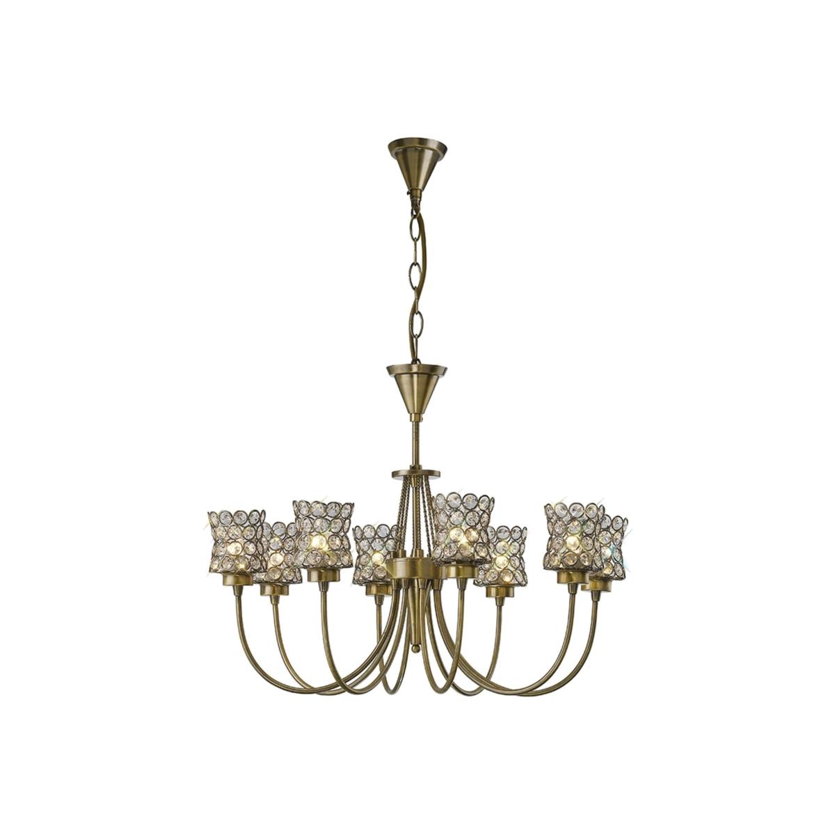 Nelson Ceiling Pendant 8 Light Antique Brass, Crystal - Antique Brass