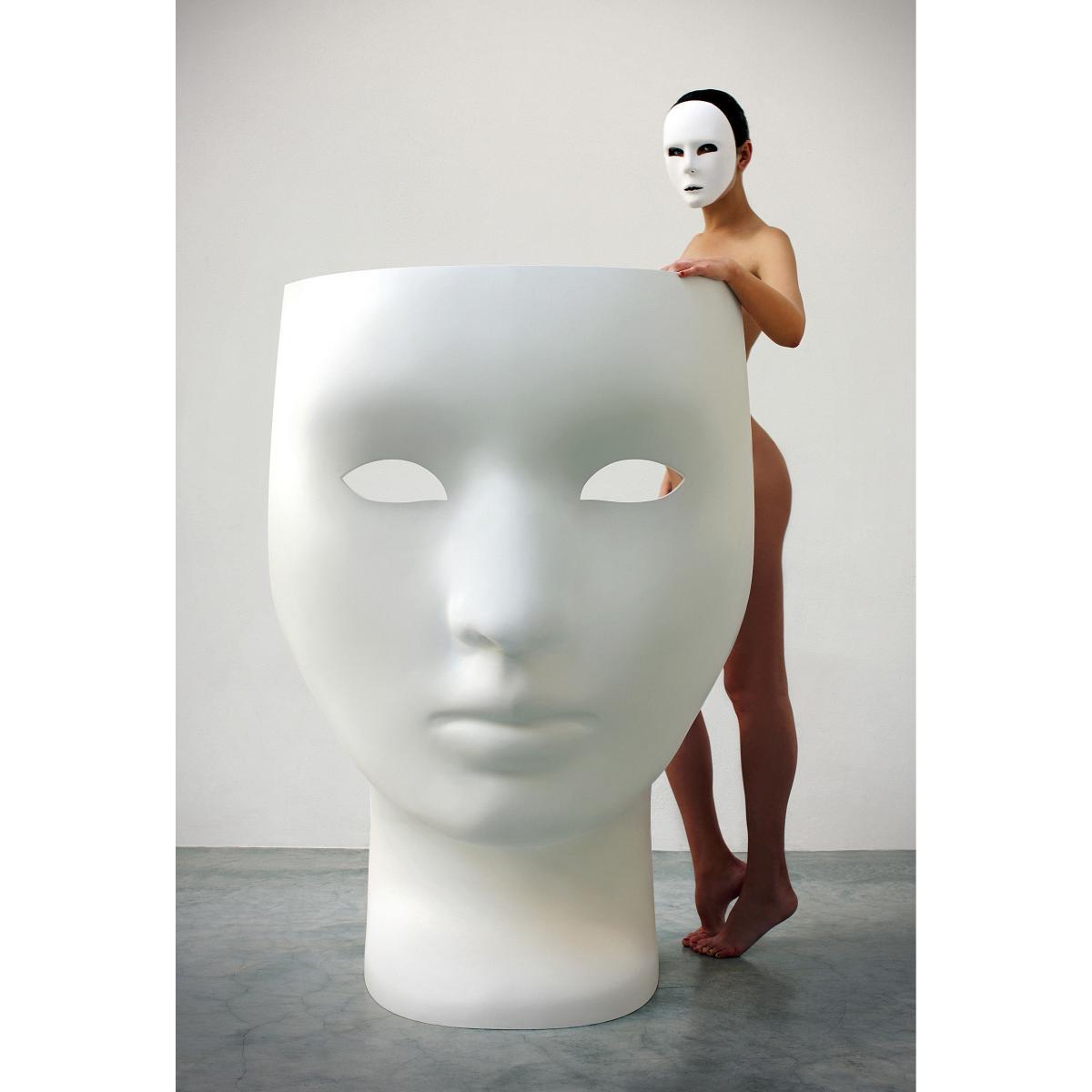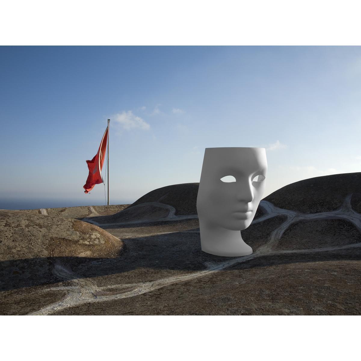 "Fabio Novembre uses furniture design to tell intense and fascinating stories in which the protagonist is often the human figure (or parts of it). This human figure is capable of becoming abstract and universal, able to propose a mythicized beauty as occurred in Greek art where heroes (assuredly ""dark and hairy"") took on proportionate and divine features in sculptures. In 2008, Fabio Novembre brought a mysterious reclined lady to life on the Divina lounger, and so with this new piece it is with all the more reason that Fabio seems to state the possibility of ""anthropomorphic design"". In fact, in Nemo a face with classic features is hollowed out to create an inhabitable space. The result is a head-armchair to be lived from the inside. Like a mask, it simultaneously conceals and reveals its inhabitant. Tall enough to protect the person, and designed to be used outside and inside alike, Nemo has the power to turn any habitat into a theatrical scene. And whoever uses it becomes the protagonist in a story!".