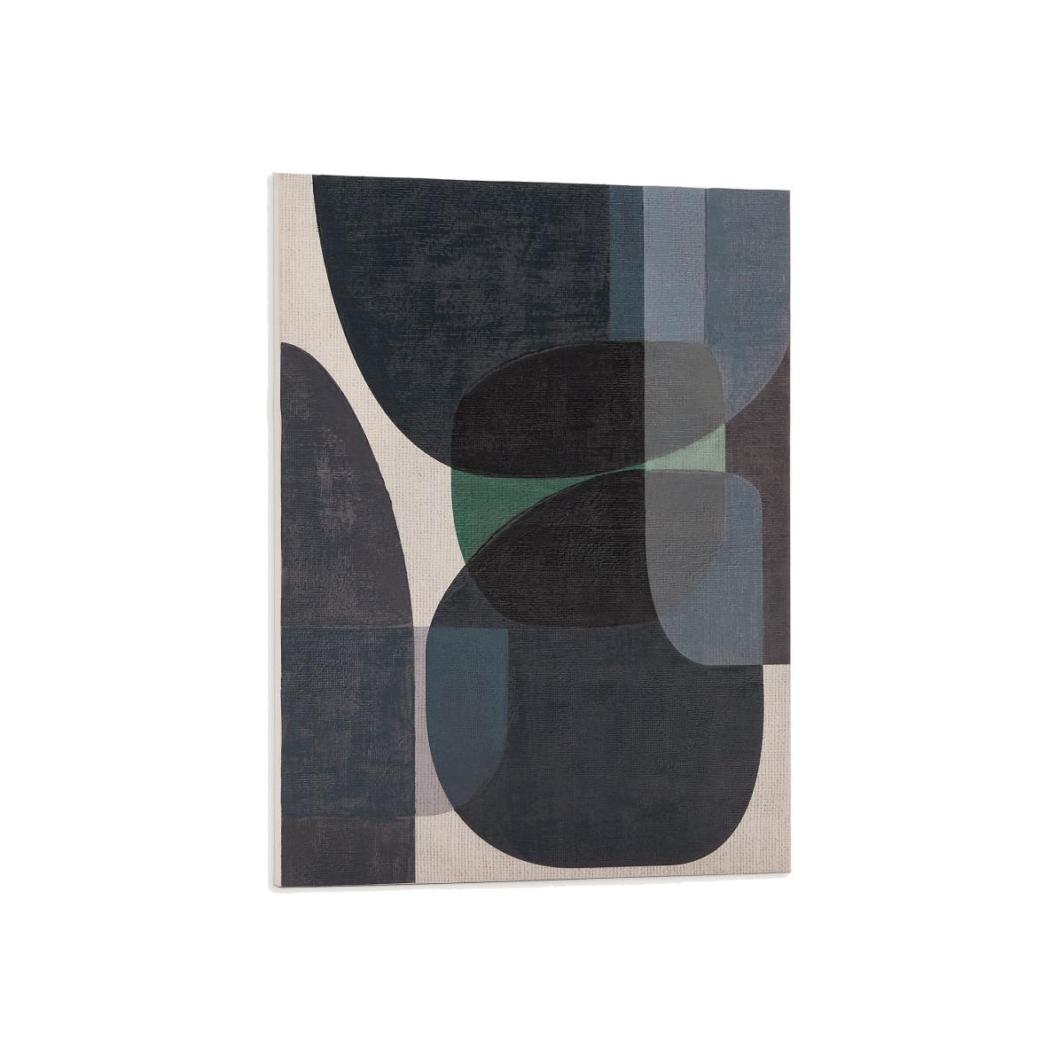 I love this piece because of its bold, abstract design and versatile colour palette, which makes it easy to incorporate into various interior styles. The blues and greens bring a calming, natural feel, while the shapes add visual interest without overwhelming the space. It works particularly well in contemporary or minimalist interiors, where it can serve as a focal point on a neutral wall. Practical styling tips include pairing it with simple, understated furnishings and letting the artwork stand out. For added impact, consider placing it above a neutral sofa or console table, and complementing it with other subtle accent pieces in similar tones for a cohesive look.